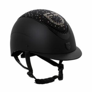 Cap opaco visiera stretta con logo in strass omologazione EN 1384-2023