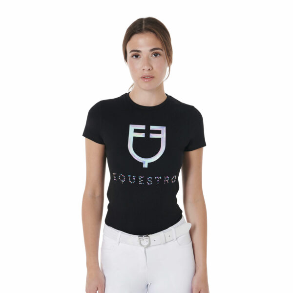 Il logo cattura la luce in modo scintillante, conferendo alla t-shirt un tocco di glamour e un’aria di eleganza. Il suo design ricercato la rende una scelta versatile per qualsiasi occasione.