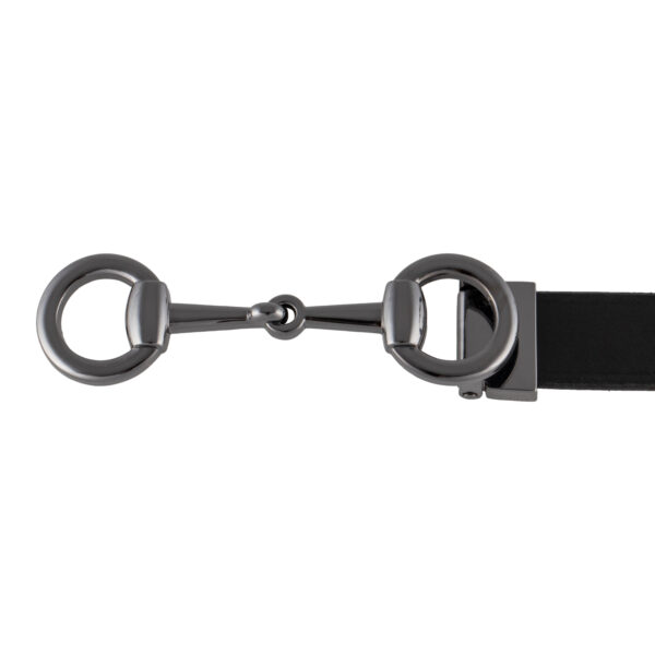 Cintura da donna realizzata in morbido cuoio lucido, resistente e di alta qualità, che garantisce un comfort ineguagliabile e una vestibilità impeccabile.