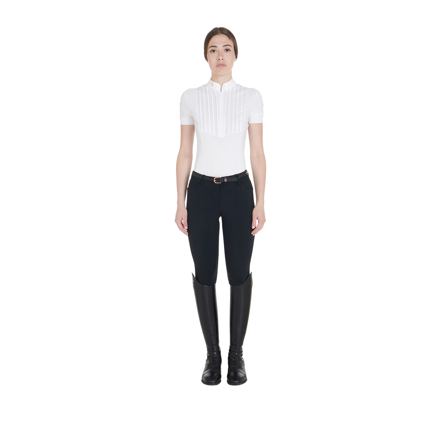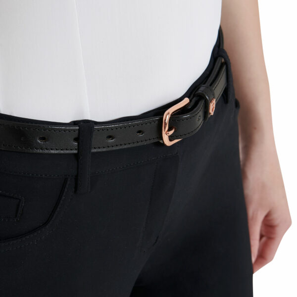 Cintura in morbido cuoio di alta qualità, impreziosita con clincher rose gold in metallo e fibbia in acciaio inox, dello stesso colore, che garantisce resistenza.