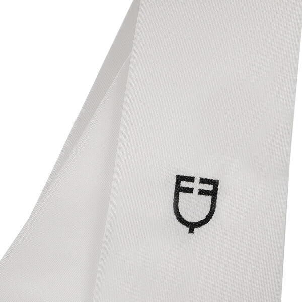 La cravatta in tessuto tecnico bianco classico rappresenta un elemento fondamentale della divisa da competizione Il ricamo centrale con logo Equestro conferisce a questo accessorio eleganza e raffinatezza uniche.