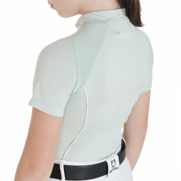 La polo risulta comoda e pratica ma al tempo stesso curata minuziosamente nei dettagli: decorata con piping, scritta Equestro laterale e logo sul colletto.