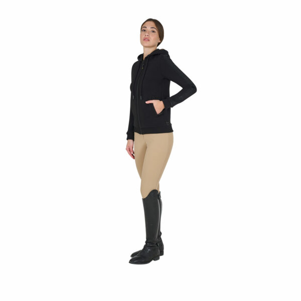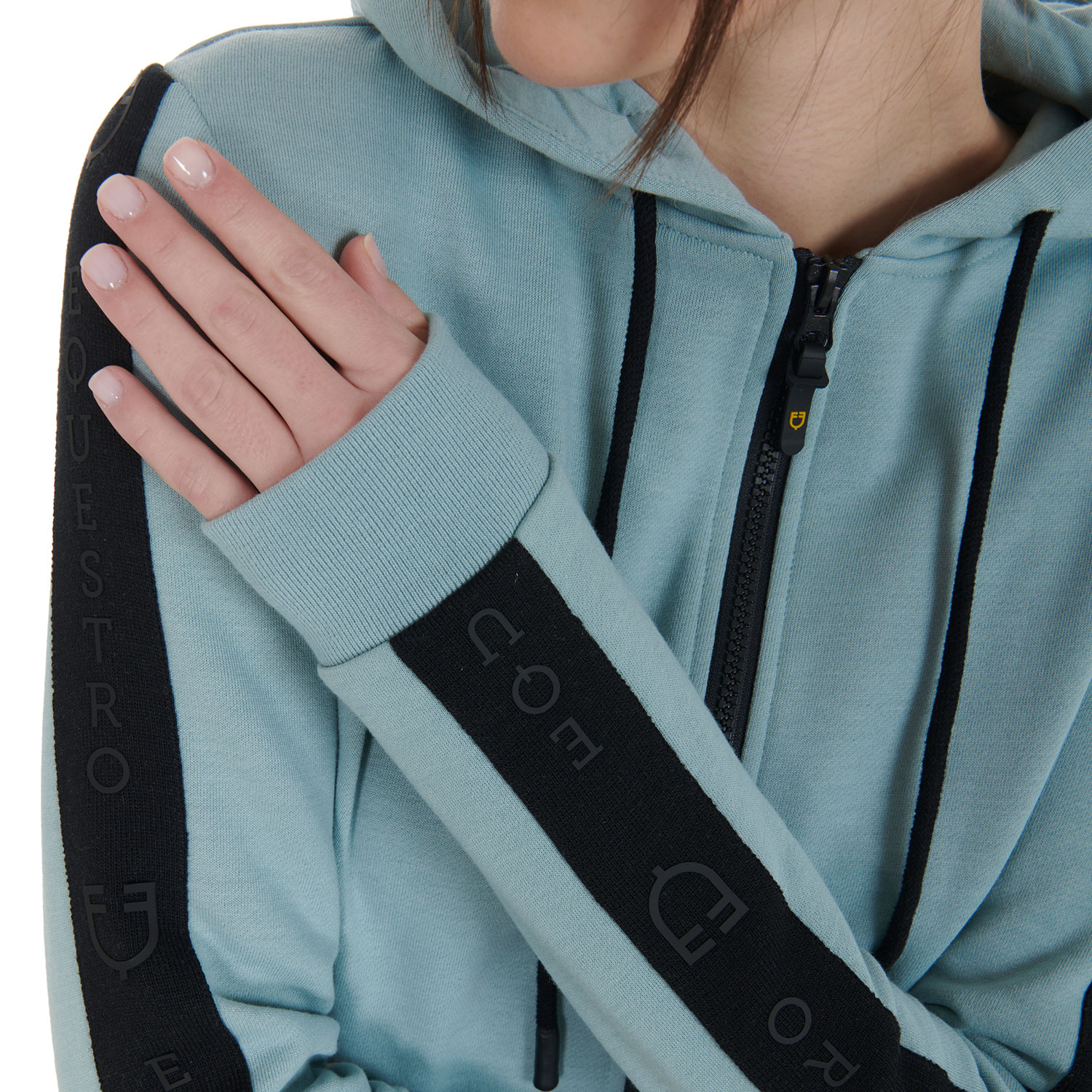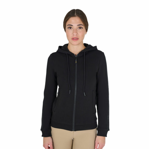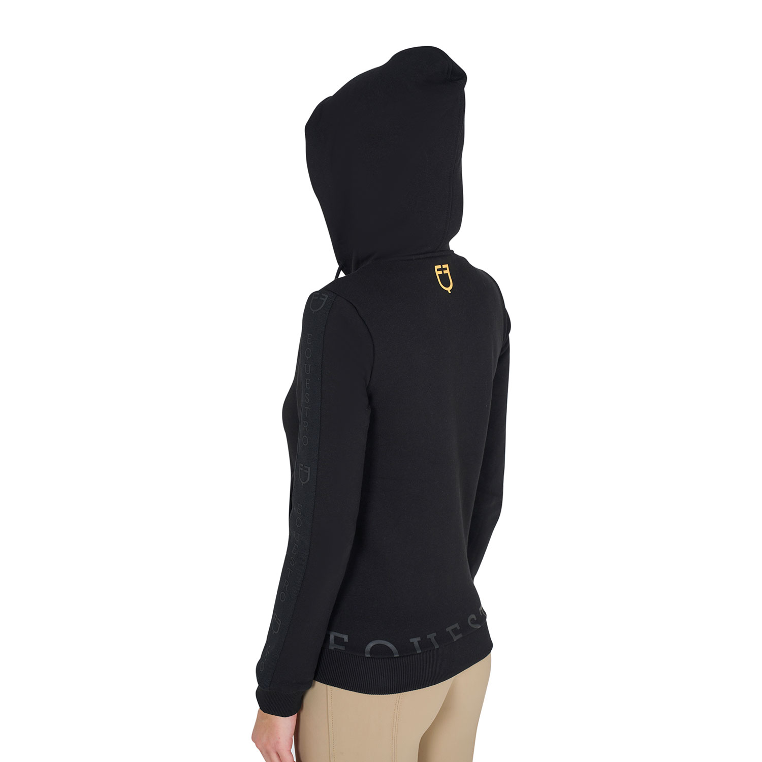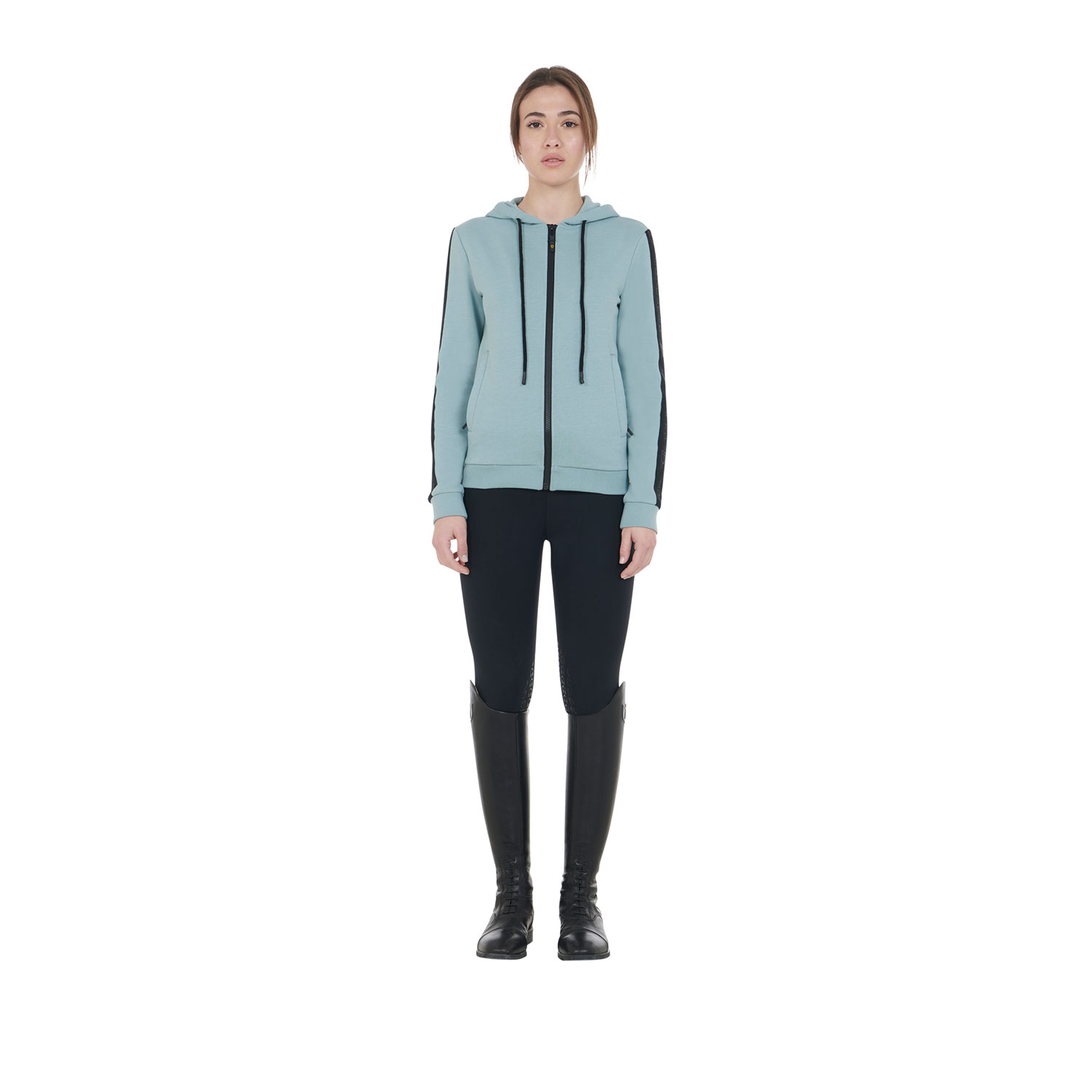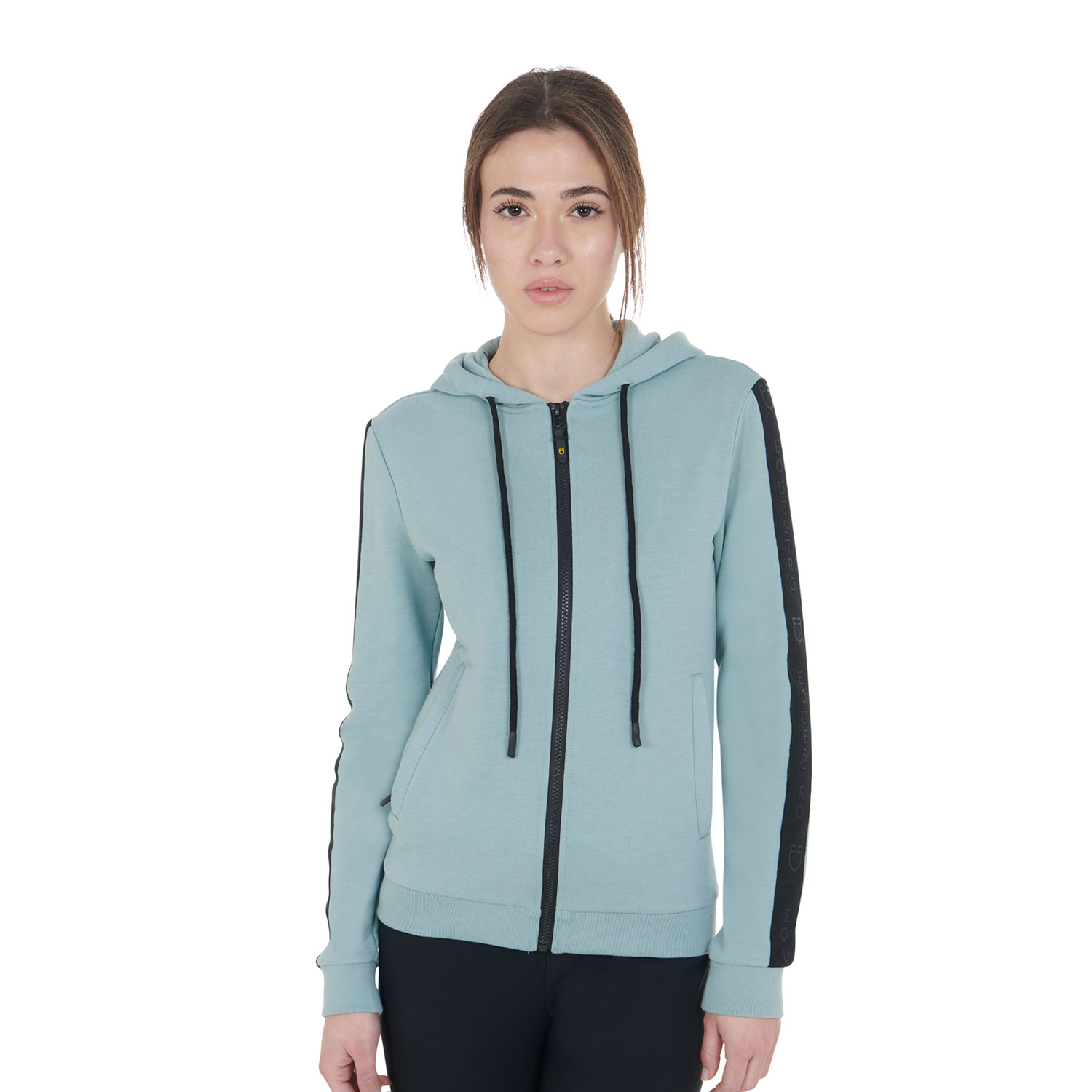 Felpa da donna con cappuccio realizzata in morbido cotone felpato. L’interno in pile avvolge in un abbraccio di morbidezza, mantenendo il calore e offrendo una sensazione di comfort eccezionale, rendendo questa felpa la migliore compagna per l’inverno.