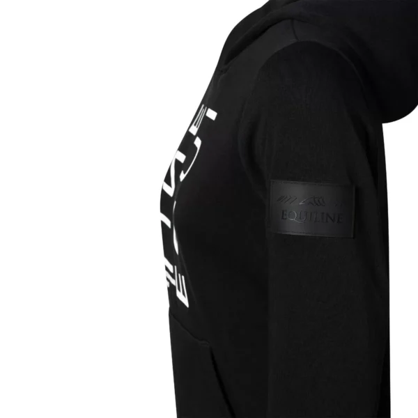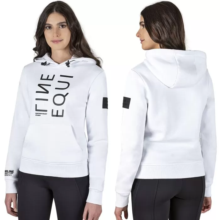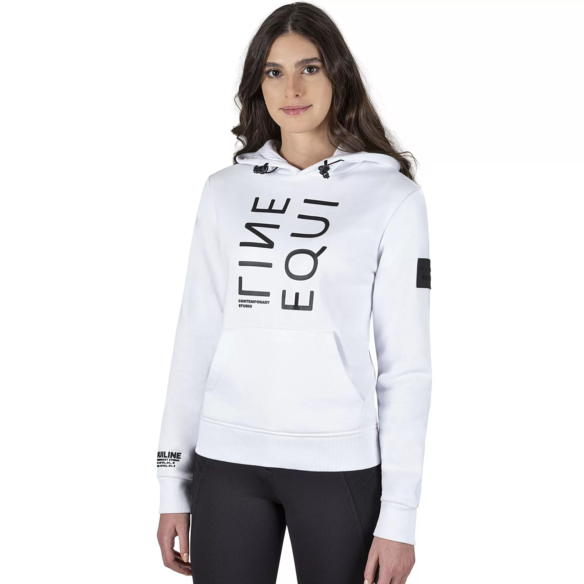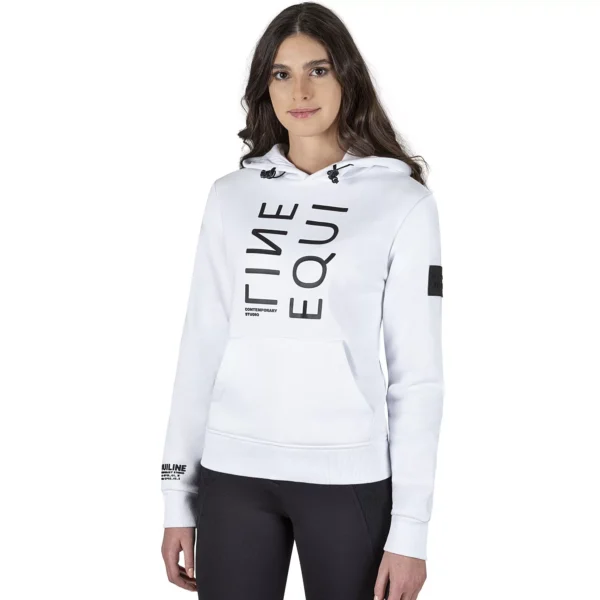 Ralizzata in misto cotone e poliestere (60/40). Sul davanti e sulla manica destra loghi equiline stampati con colore a contrasto. Cappuccio regolabile tramite doppi cordoncini e tasca unita dul davanti
