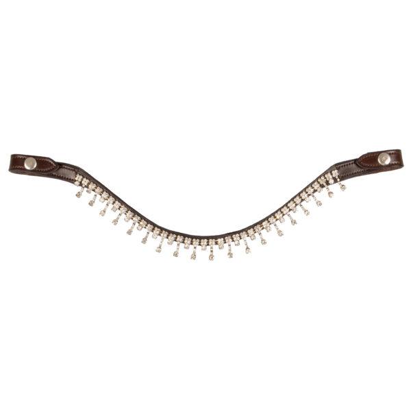 Il frontalino Queen è caratterizzato da una serie di cristalli incastonati e pendenti, che danno un tocco molto glamour al tuo cavallo. Aggiungi un po’ di luccichio alla tua briglia con una bellissima fascia frontale impreziosita da cristalli Acavallo.