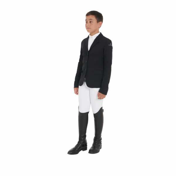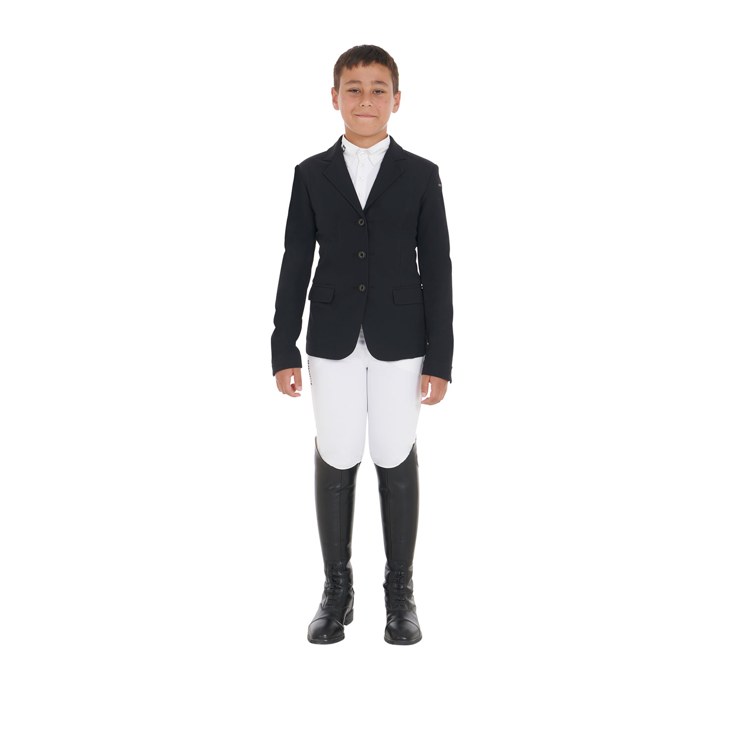 Giacca bambini da concorso, tre bottoni, in tessuto tecnico traspirante di alta qualità, ultra leggero ed elasticizzato.