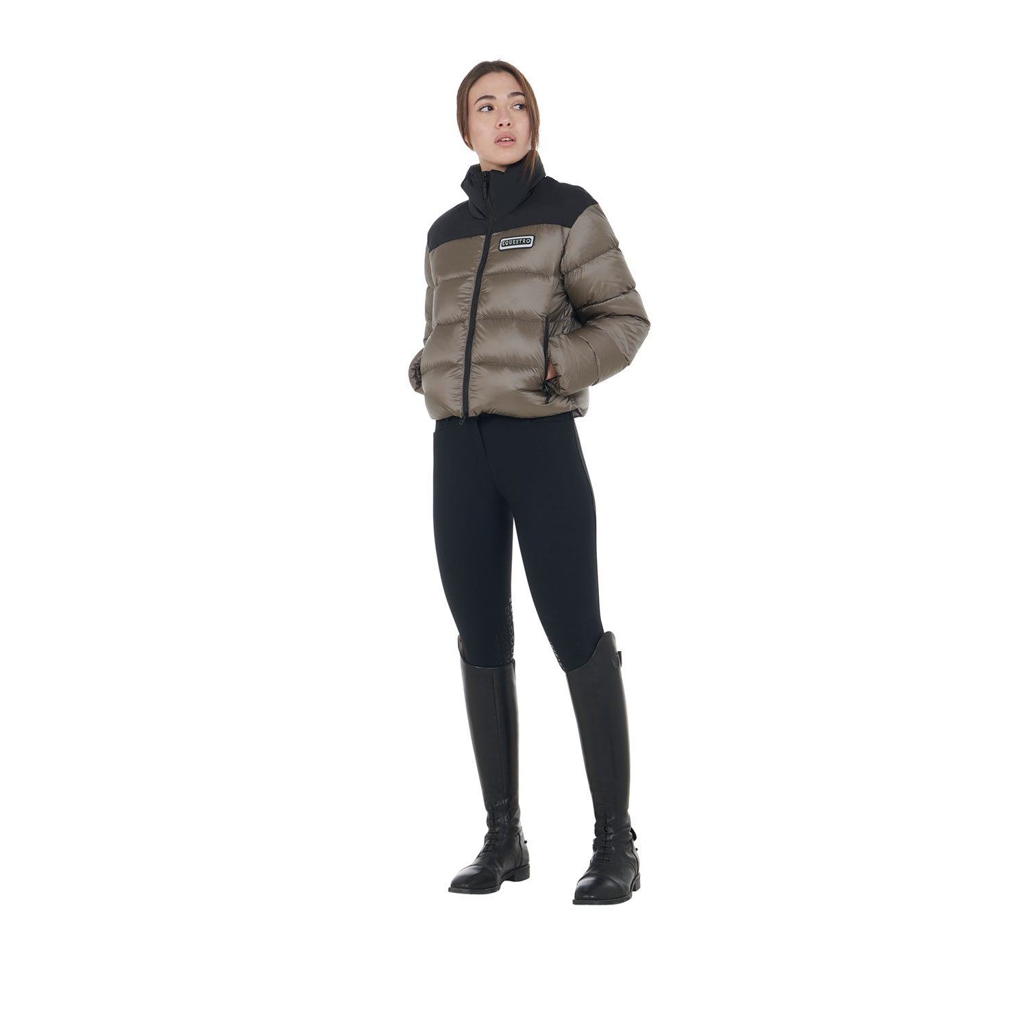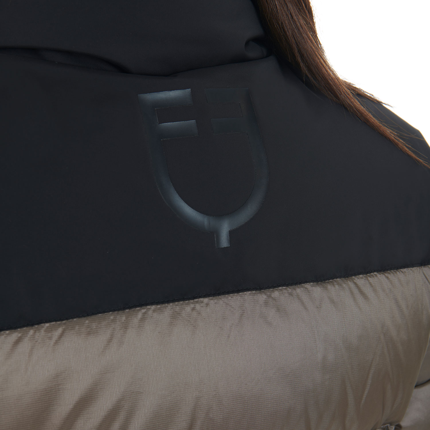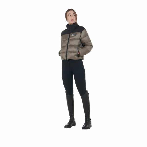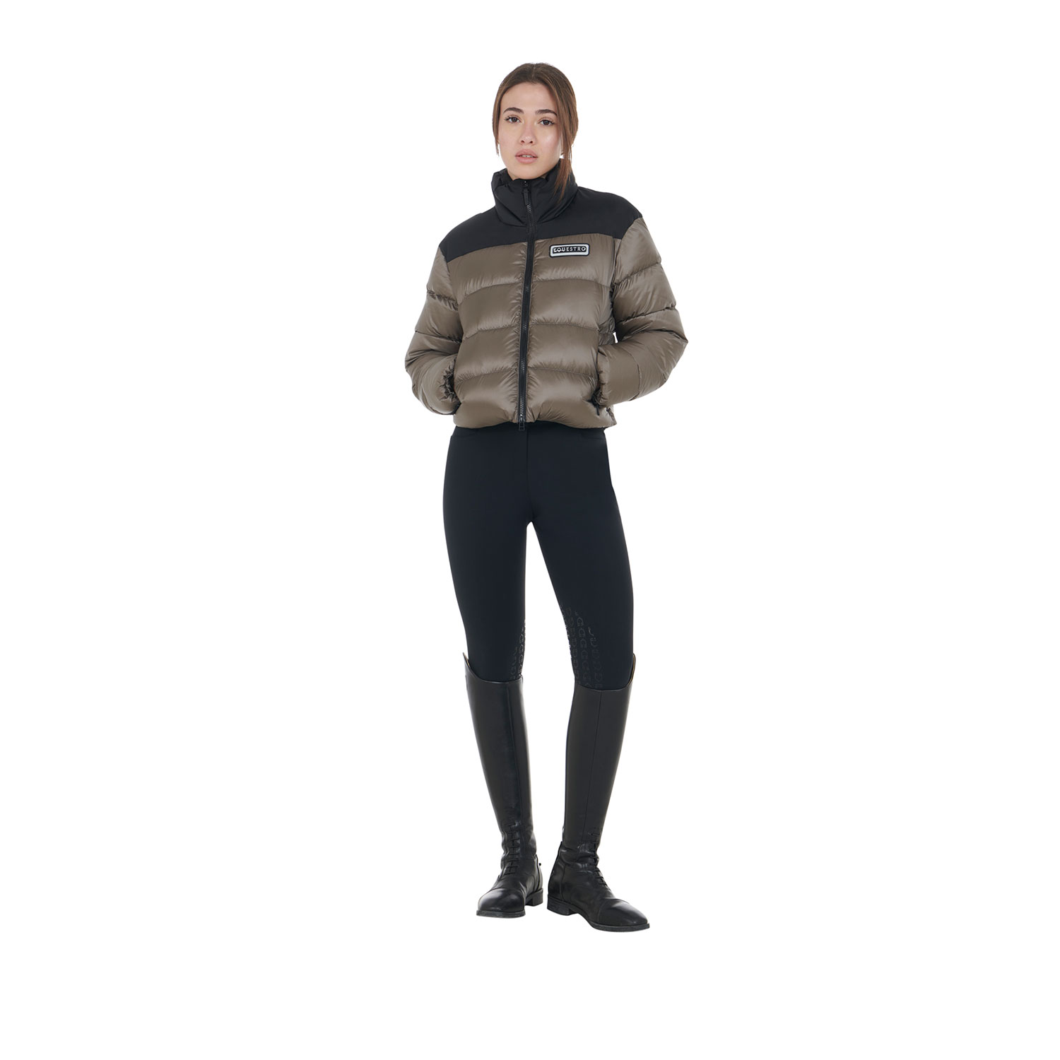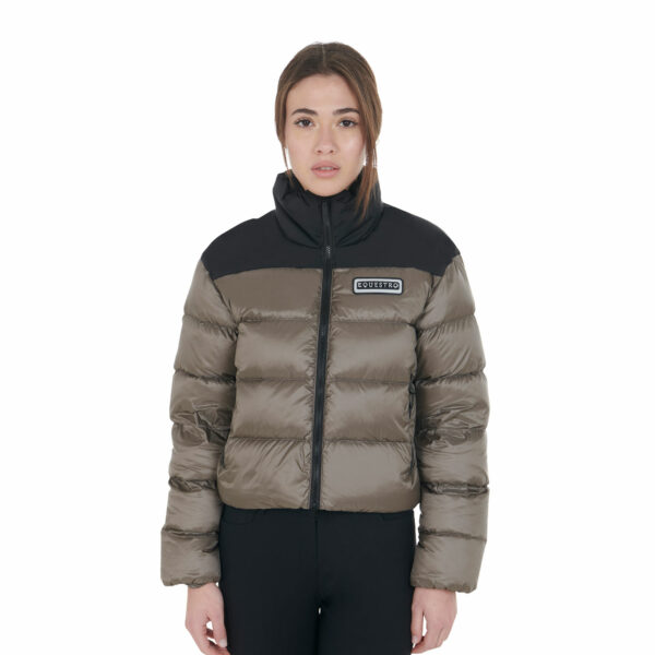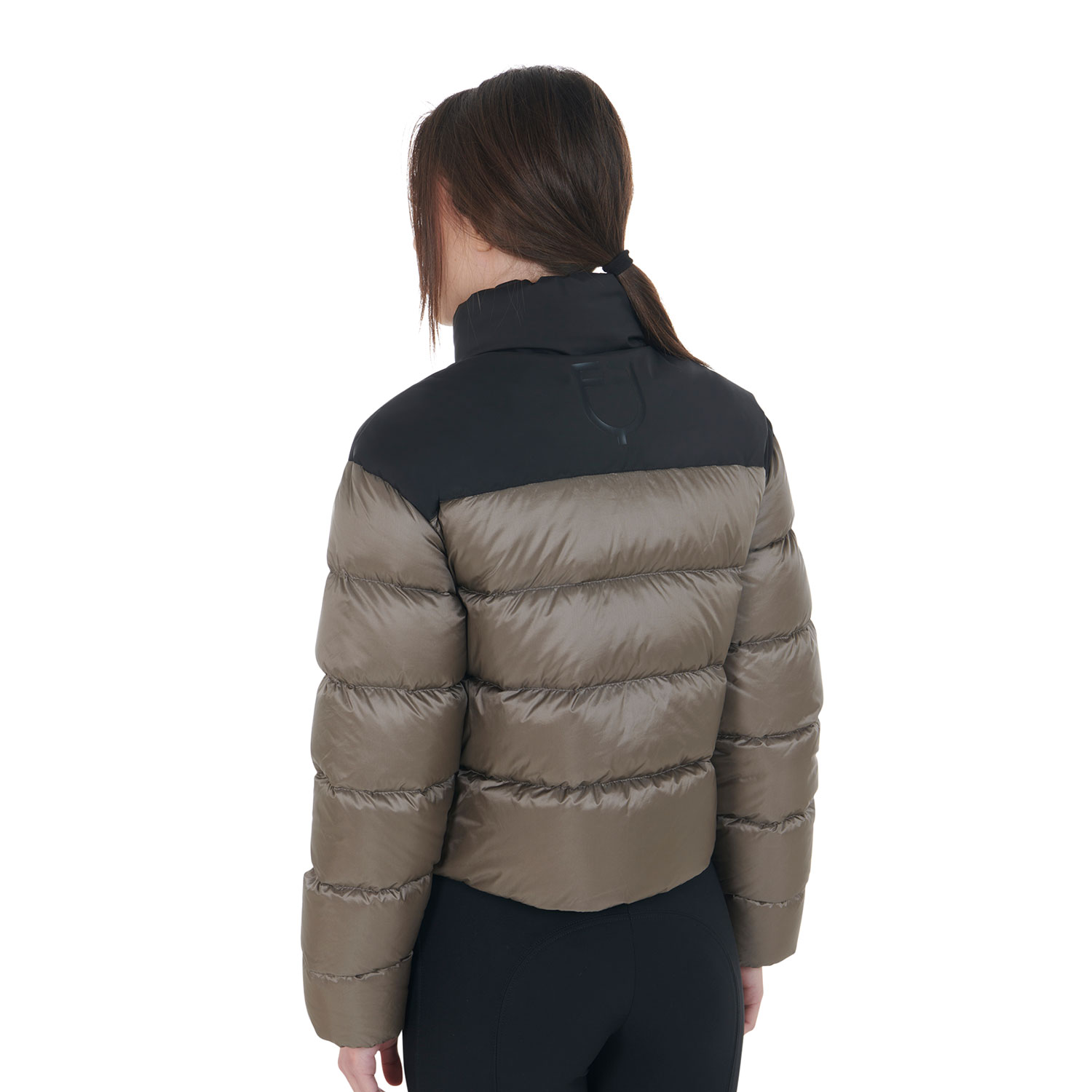 Giacca piumino da donna realizzata in tessuto tecnico bimateriale con elegante trapuntatura orizzontale, concepita per combinare al meglio praticità e uno stile all’avanguardia. Questa giacca si distingue per il taglio corto che gli dona un carattere inedito.
