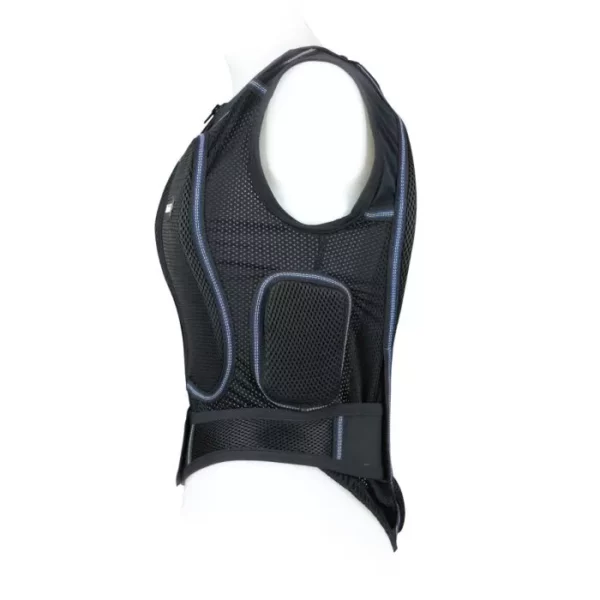 Oltre alla protezione sulla schiena ha pannelli protettivi sul davanti, ai lati e sul girocollo. I pannelli frontali ed il pannello in zona coccige sono removibili.( togliendo i pannelli frontali la protezione passa al livello 1 ). Tali pannelli sono flessibili e si adattano alla forma del corpo man mano si utilizza il corpetto.