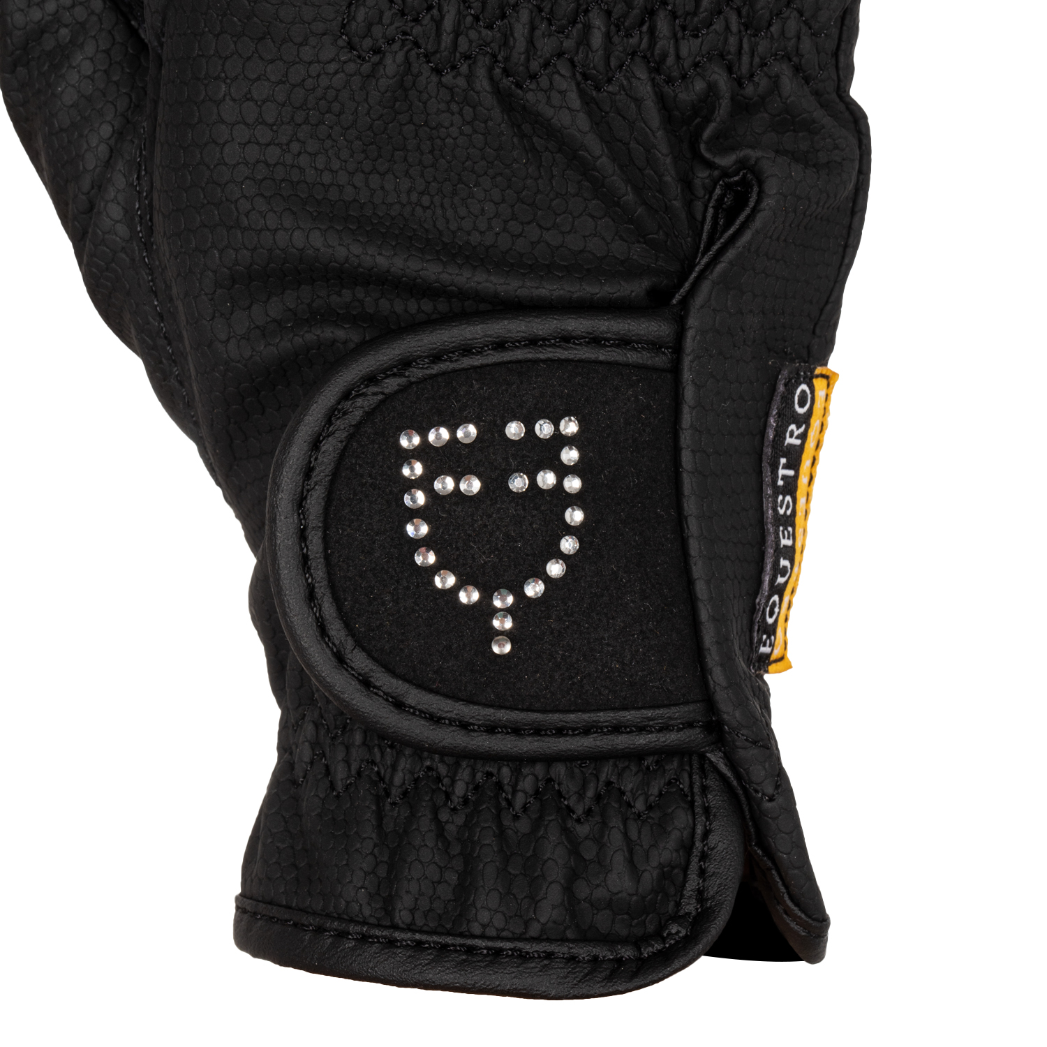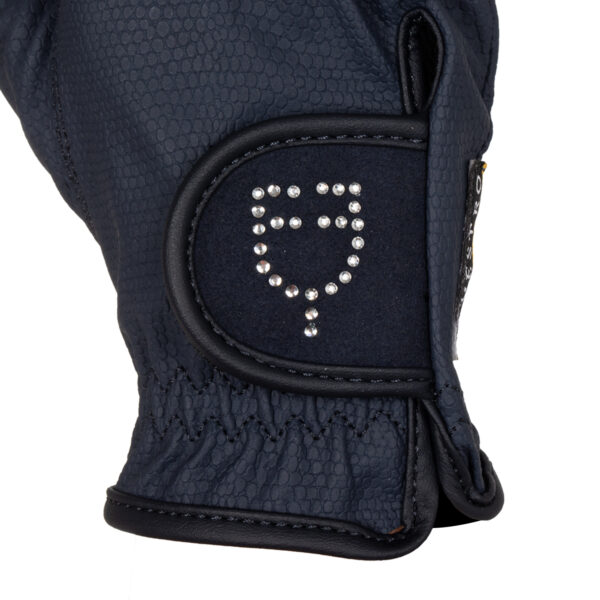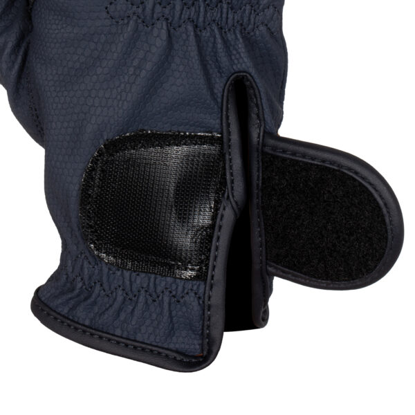 La resistente chiusura in velcro garantisce una tenuta sicura e stabile. È facile da regolare e permette al cavaliere di fissare saldamente i guanti intorno al polso, evitando che si spostino o si allentino durante l’attività.