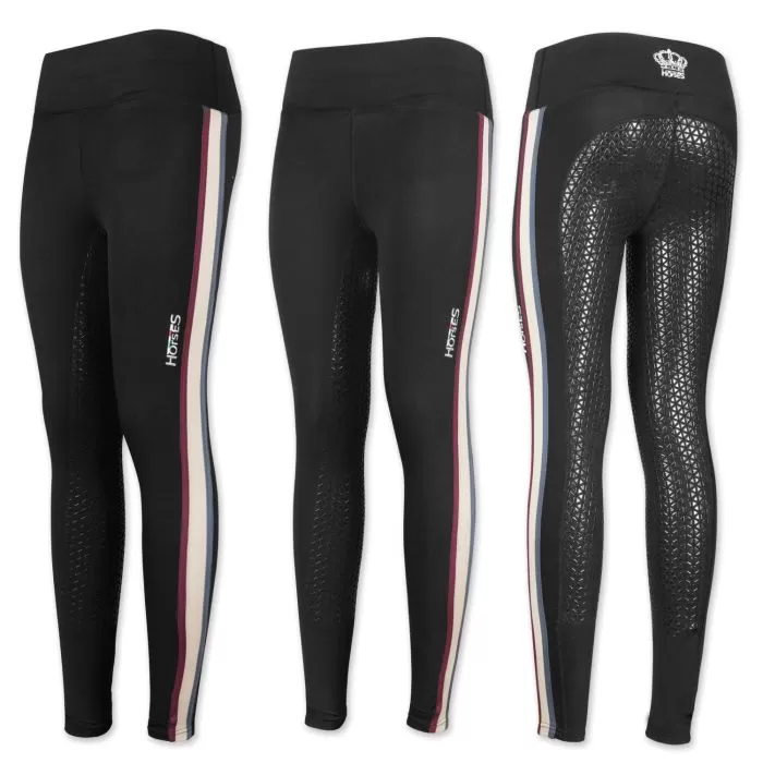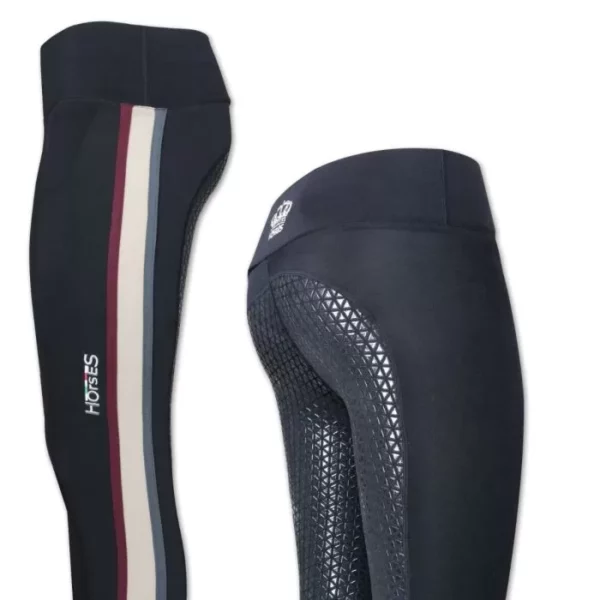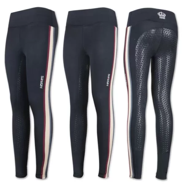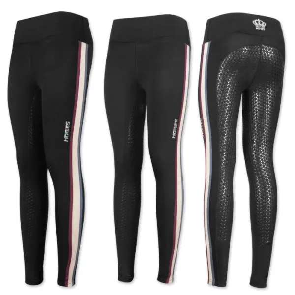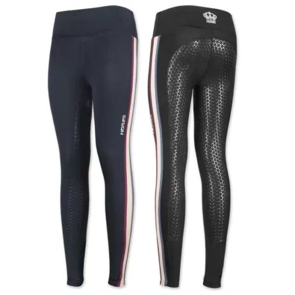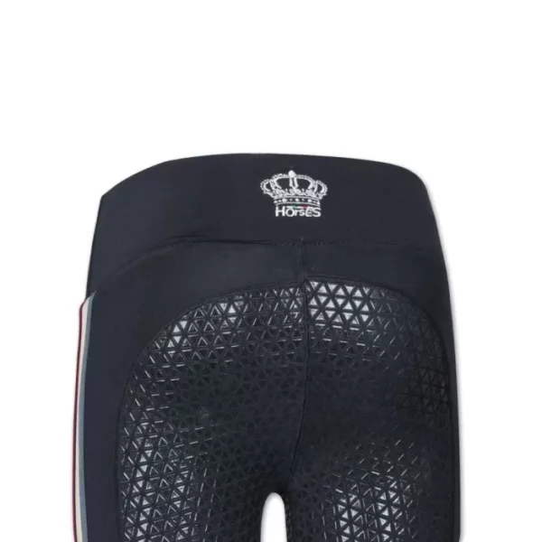 Hanno inoltre una fascia tricolore lungo tutta la gamba sinistra, ed il logo Horses ricamato sulla coscia e nella parte posteriore, sulla fascia in vita.
