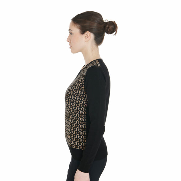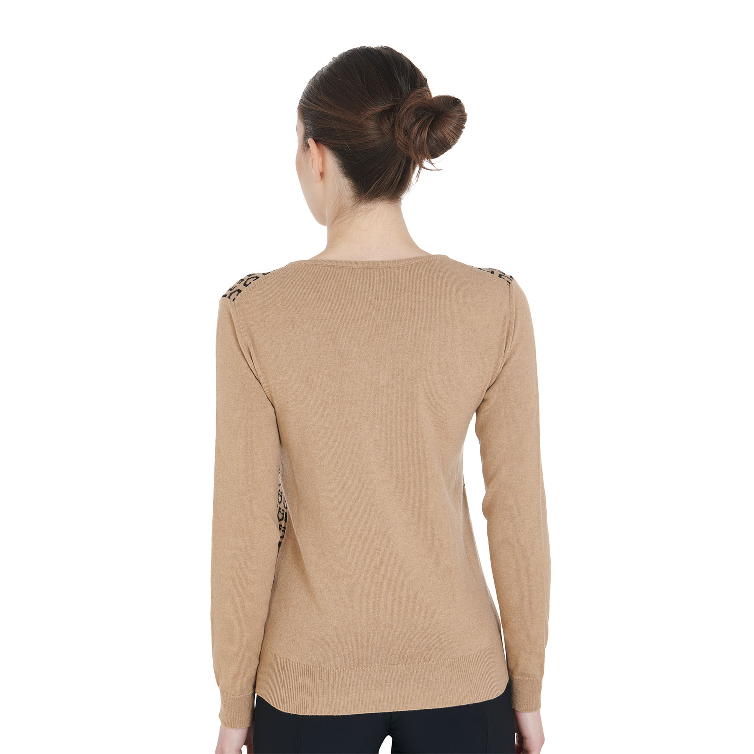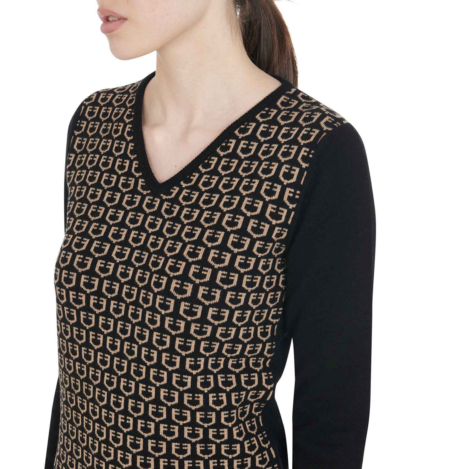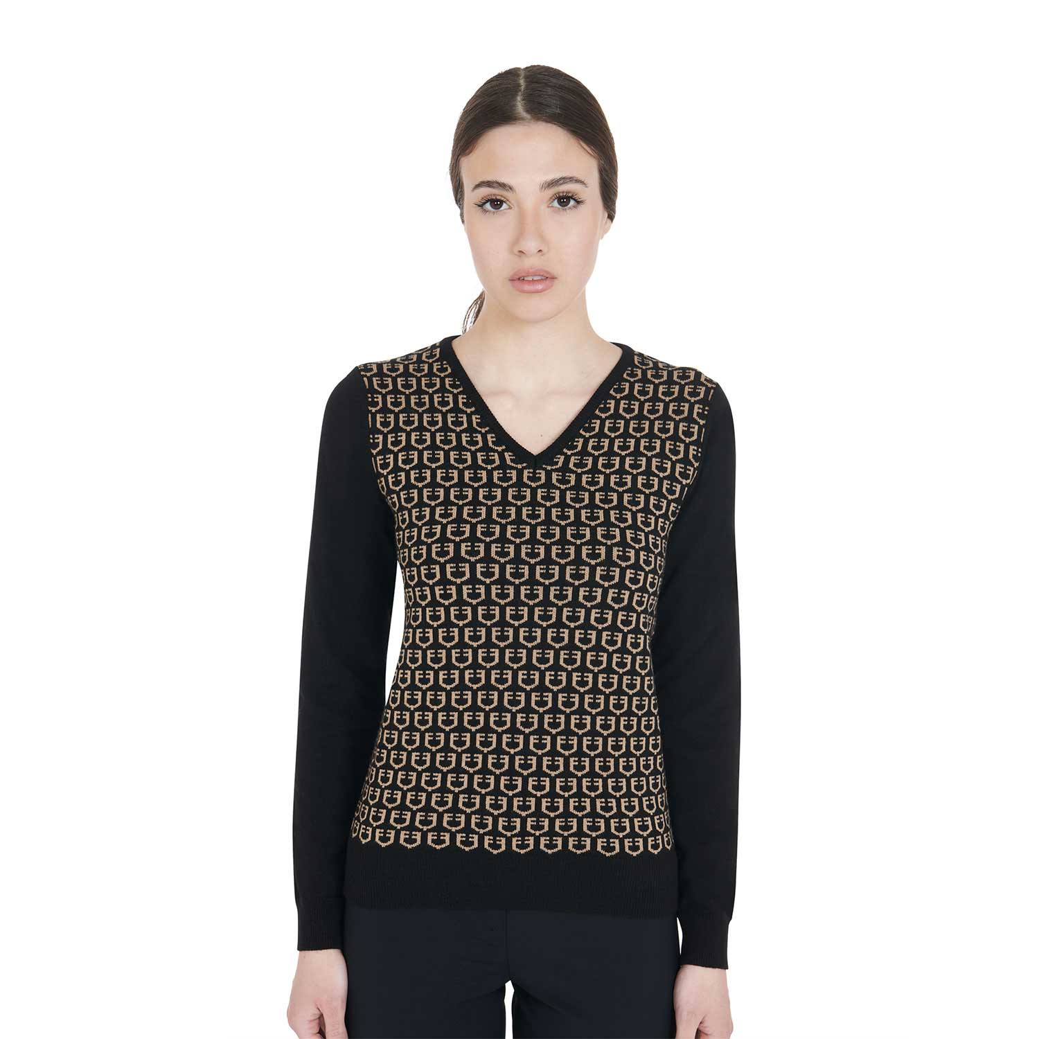 maglioncino da donna con scollo a V dall’originale design con loghi a contrasto.