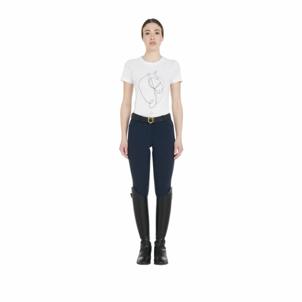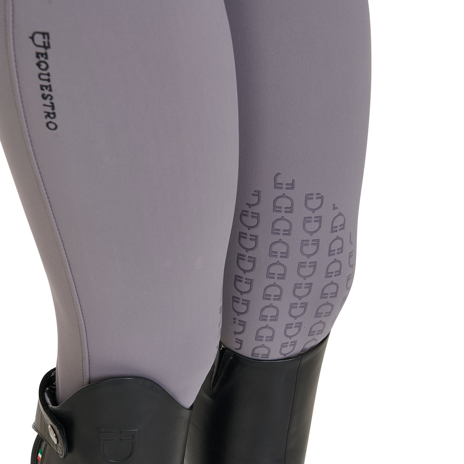 - Grip in silicone con grafica logo Equestro sulla parte interna del ginocchio.