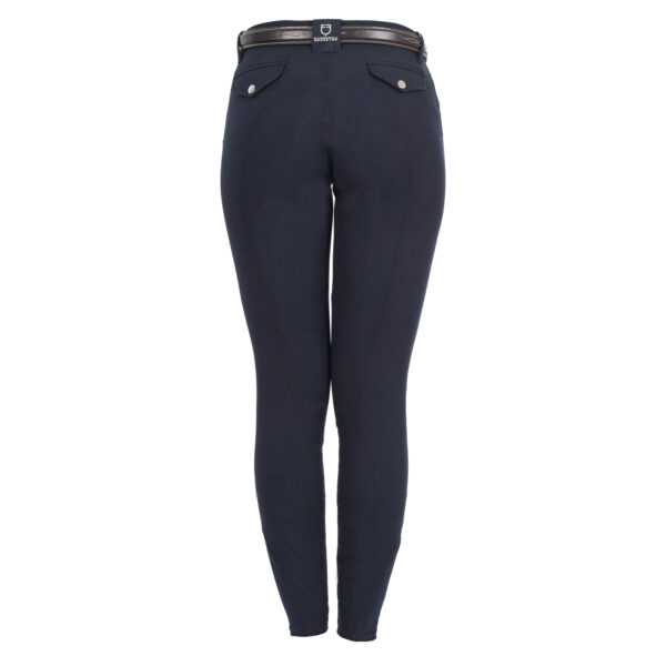 Pantalone slim fit da donna in cotone bielastico e traspirante, con tasche frontali e posteriori e targhetta in metallo sul passante della cintura.