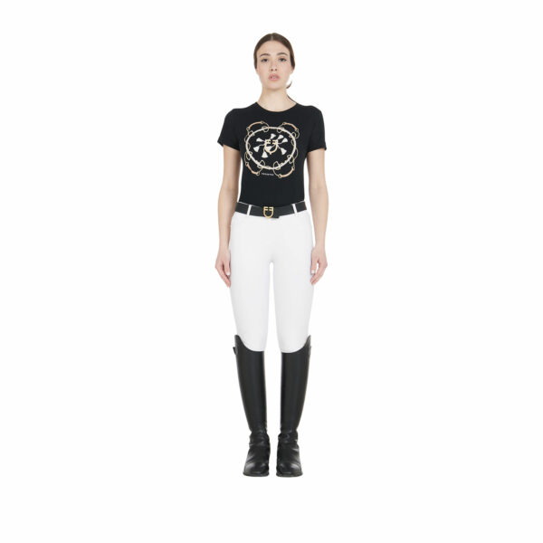 - Grip in silicone con grafica Logo Equestro sulla parte interna del ginocchio.