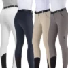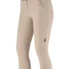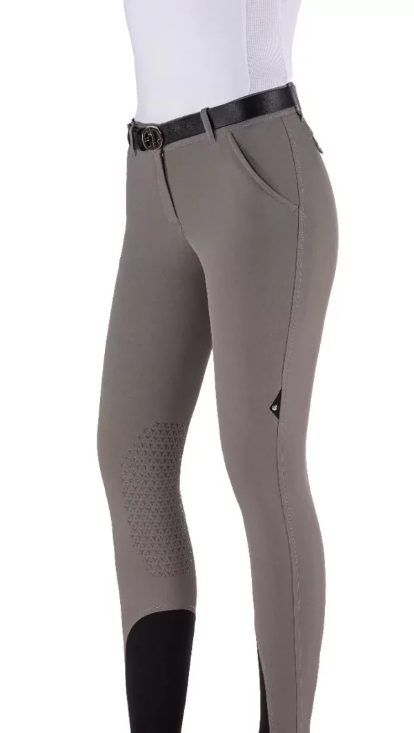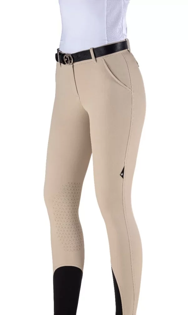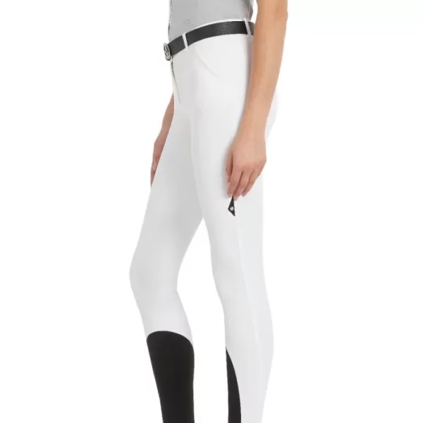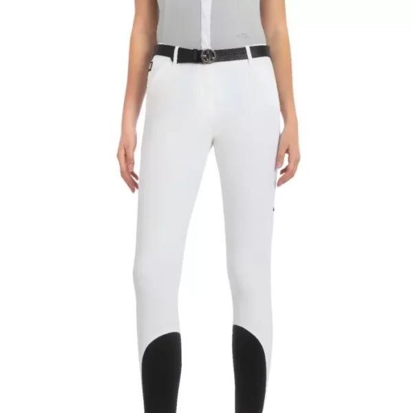 Pantaloni da equitazione per donna Equiline modello “Ebbae” con grip al ginocchio per permettere una maggiore stabilità e aderenza in sella.