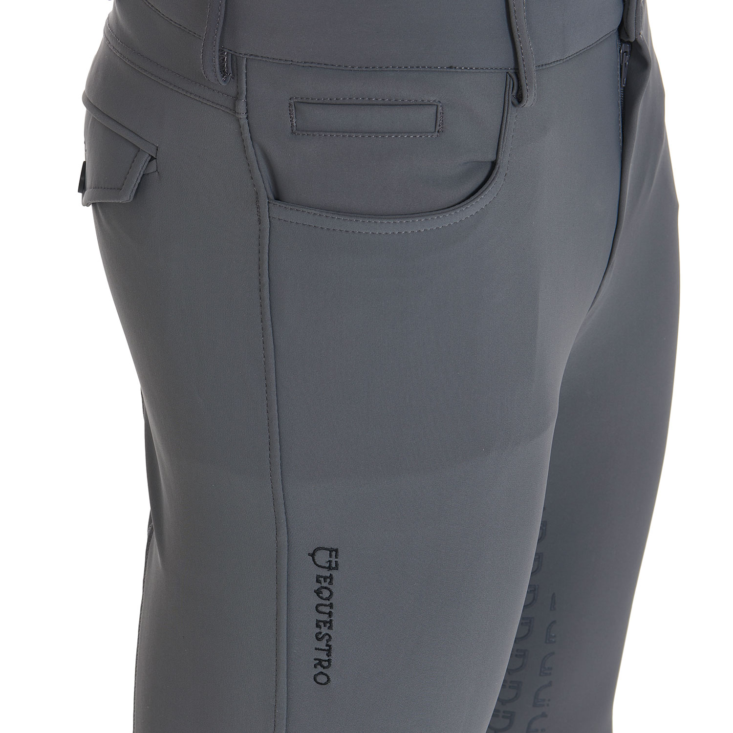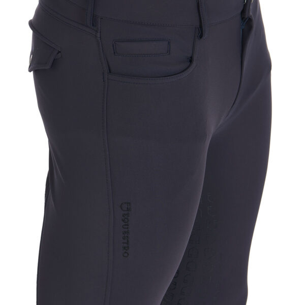 - Grip in silicone con grafica Logo Equestro sulla parte interna del ginocchio.