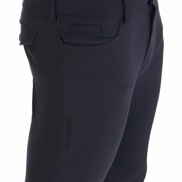 - Grip in silicone con grafica Logo Equestro sulla parte interna del ginocchio.