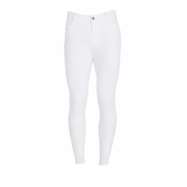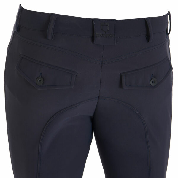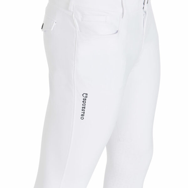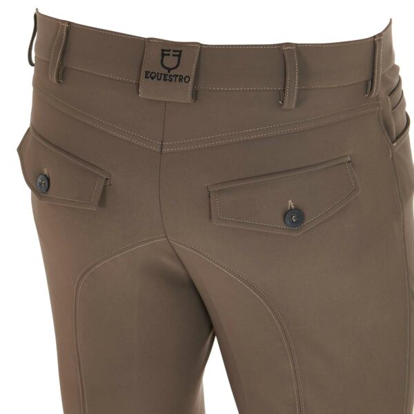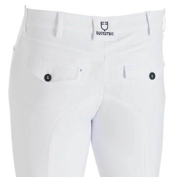 Ideati con tasche frontali, posteriori e con grip in silicone, con logo Equestro, sulla parte interna del ginocchio. Tale inserto assicura stabilità e aderenza alla sella garantendo, allo stesso tempo, una massima libertà nei movimenti.