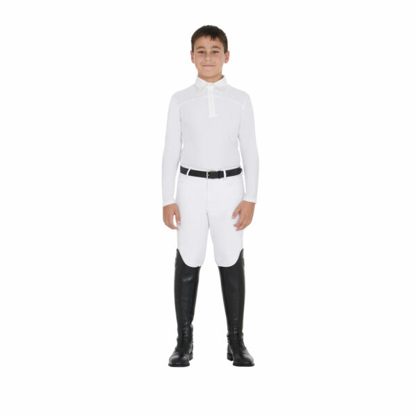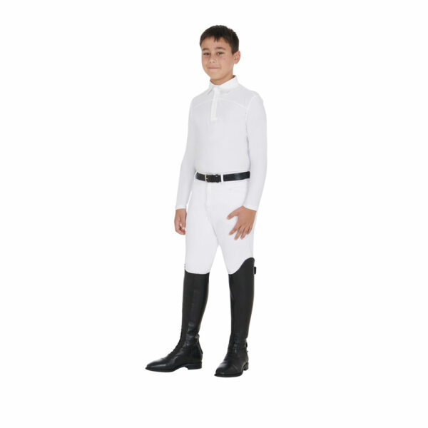 Polo bambino slim fit da concorso a manica lunga in tessuto tecnico, che garantisce un ottimo comfort e vestibilità. Infatti il taglio anatomico rende il capo elegante, ma allo stesso tempo confortevole e pratico.
