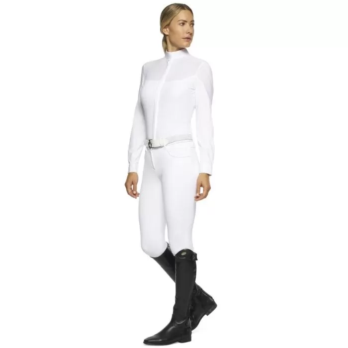 Polo da concorso di equitazione per donna Cavalleria Toscana modello Textured Jersey con maniche lunghe, combina comodità, eleganza e funzionalità.
