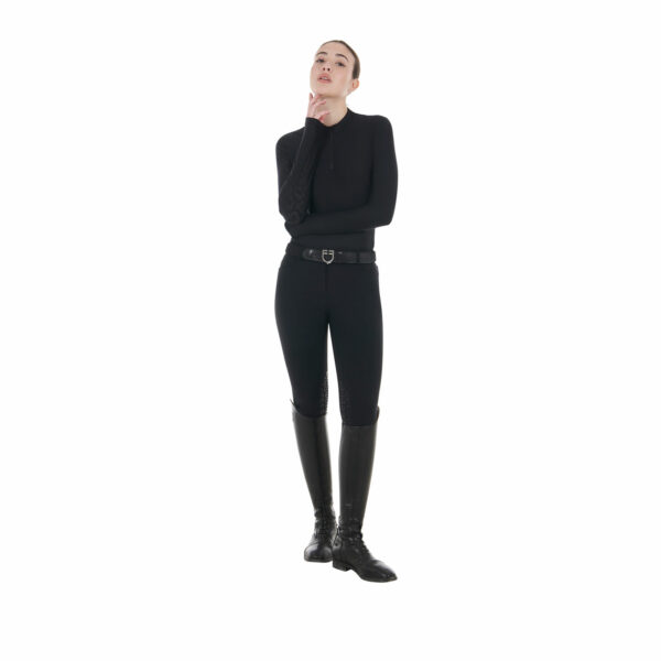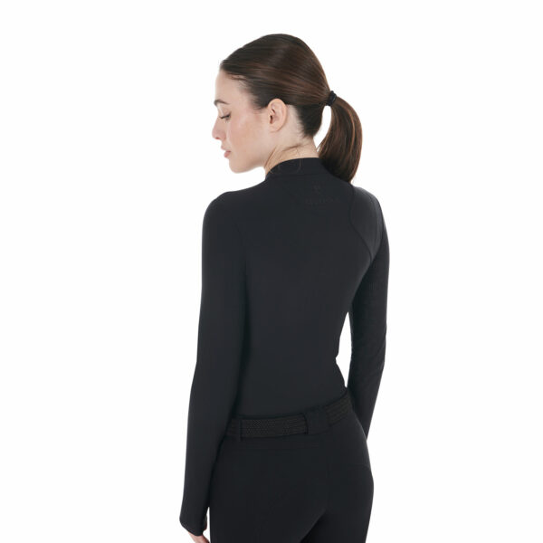 Polo donna da allenamento in tessuto tecnico che con le sue proprietà traspiranti e riscaldanti mantiene la temperatura corporea ideale anche quando l’allenamento è intenso.