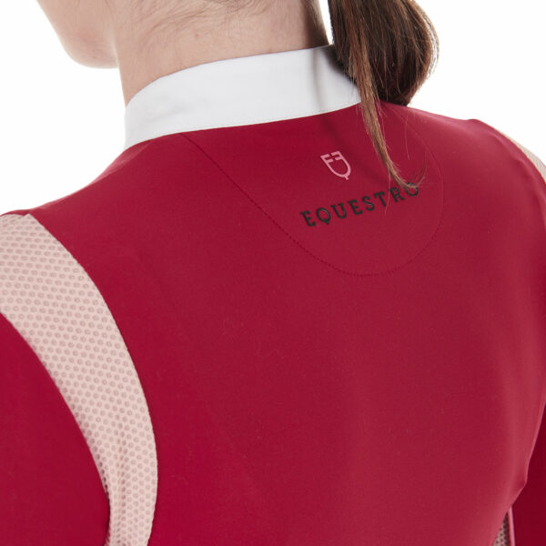 Polo da donna slim fit realizzata in tessuto tecnico elastico che conferisce un aspetto unico e sofisticato.