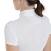 Polo donna slim fit a mezza manica in tessuto tecnico microforato, perfetta per allenamenti quotidiani e competizioni.