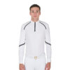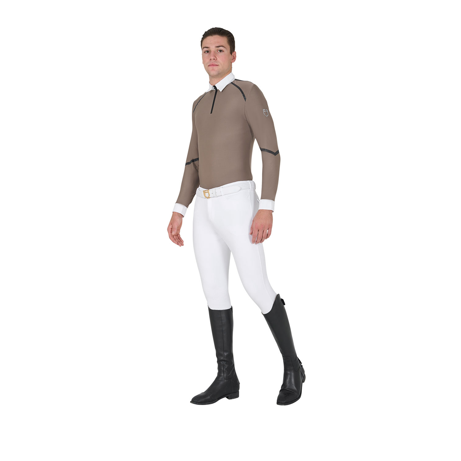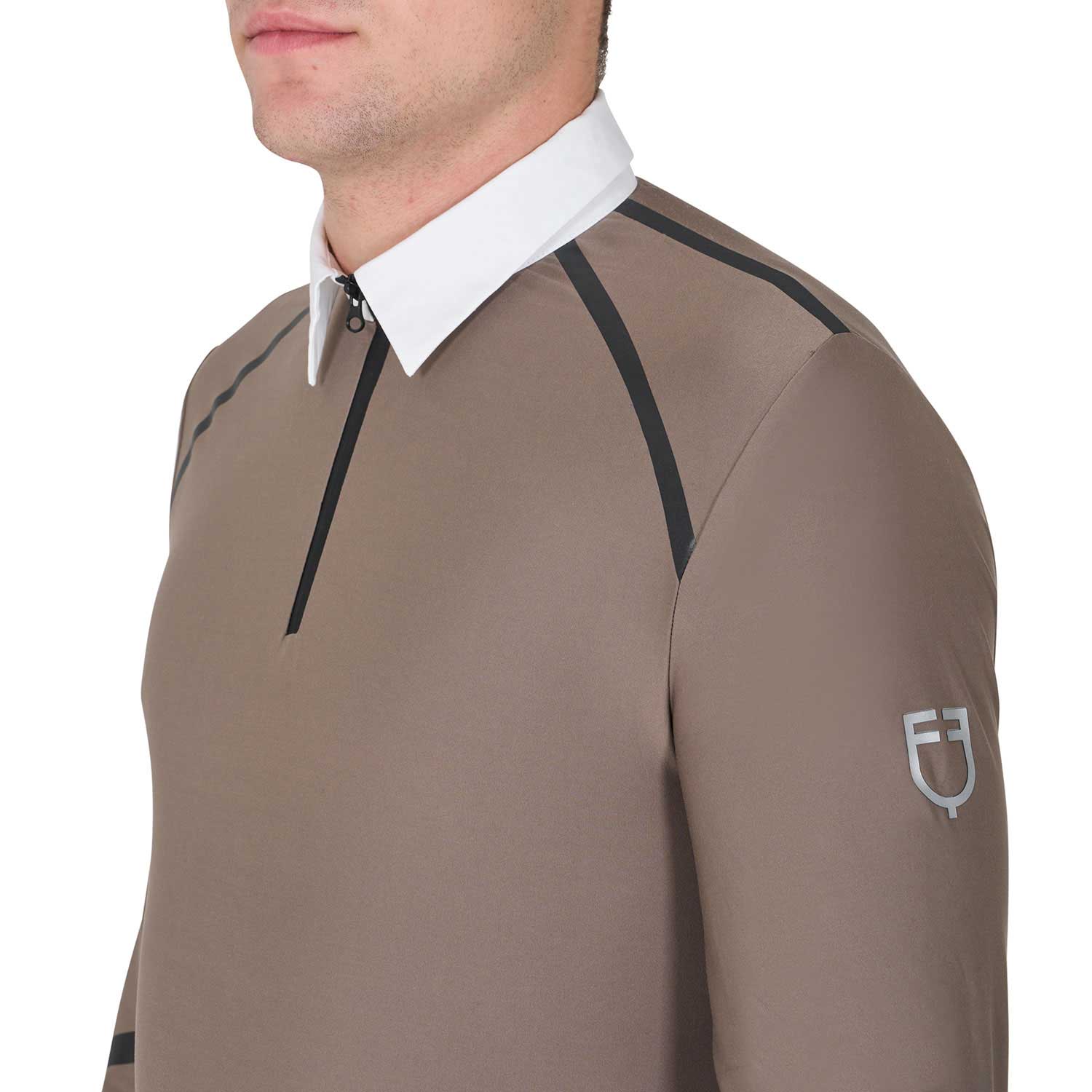 La polo è dotata di una pratica chiusura a zip con sistema antivento, polsini con chiusura a due bottoni e non dimenticare di notare il logo Equestro posizionato nella spalla sinistra.