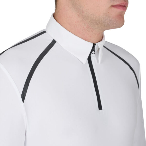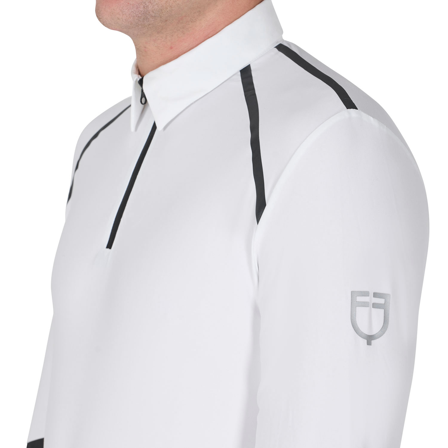 Polo uomo slim fit da concorso a manica lunga realizzata in tessuto tecnico di alta qualità.