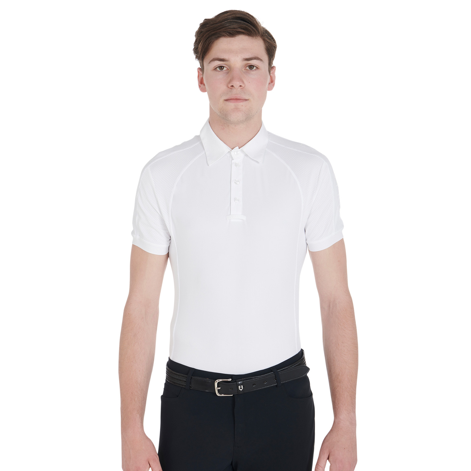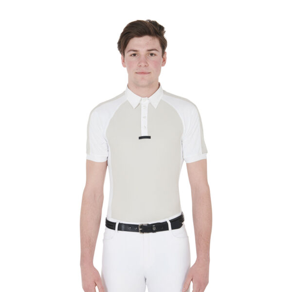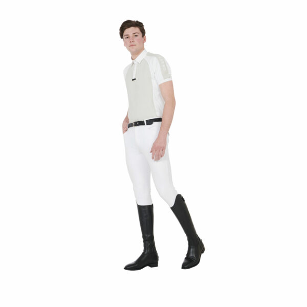 Polo uomo slim fit a mezza manica con elastico in tessuto tecnico traspirante.