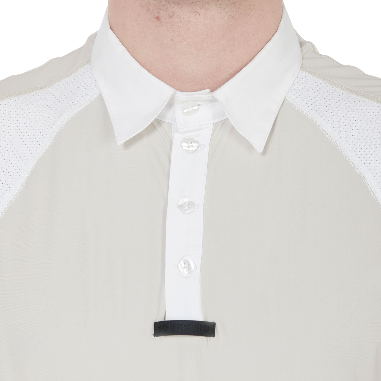 Il capo è ulteriormente arricchito dalla chiusura a quattro bottoni, dal colletto e dalla scritta Equestro sulla manica sinistra.