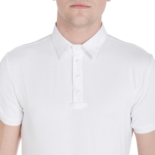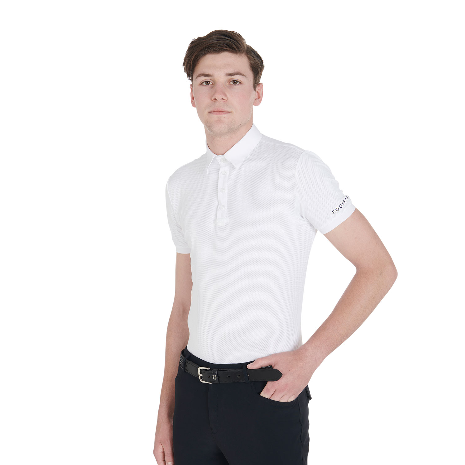 Polo uomo slim fit da concorso realizzata interamente in tessuto traforato (mesh) a manica corta, perfetta per la stagione estiva in quanto super traspirante e fresca.
