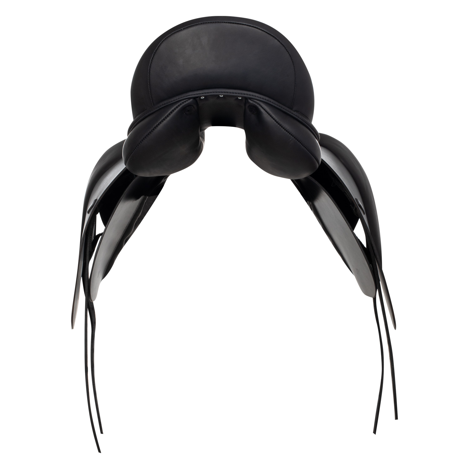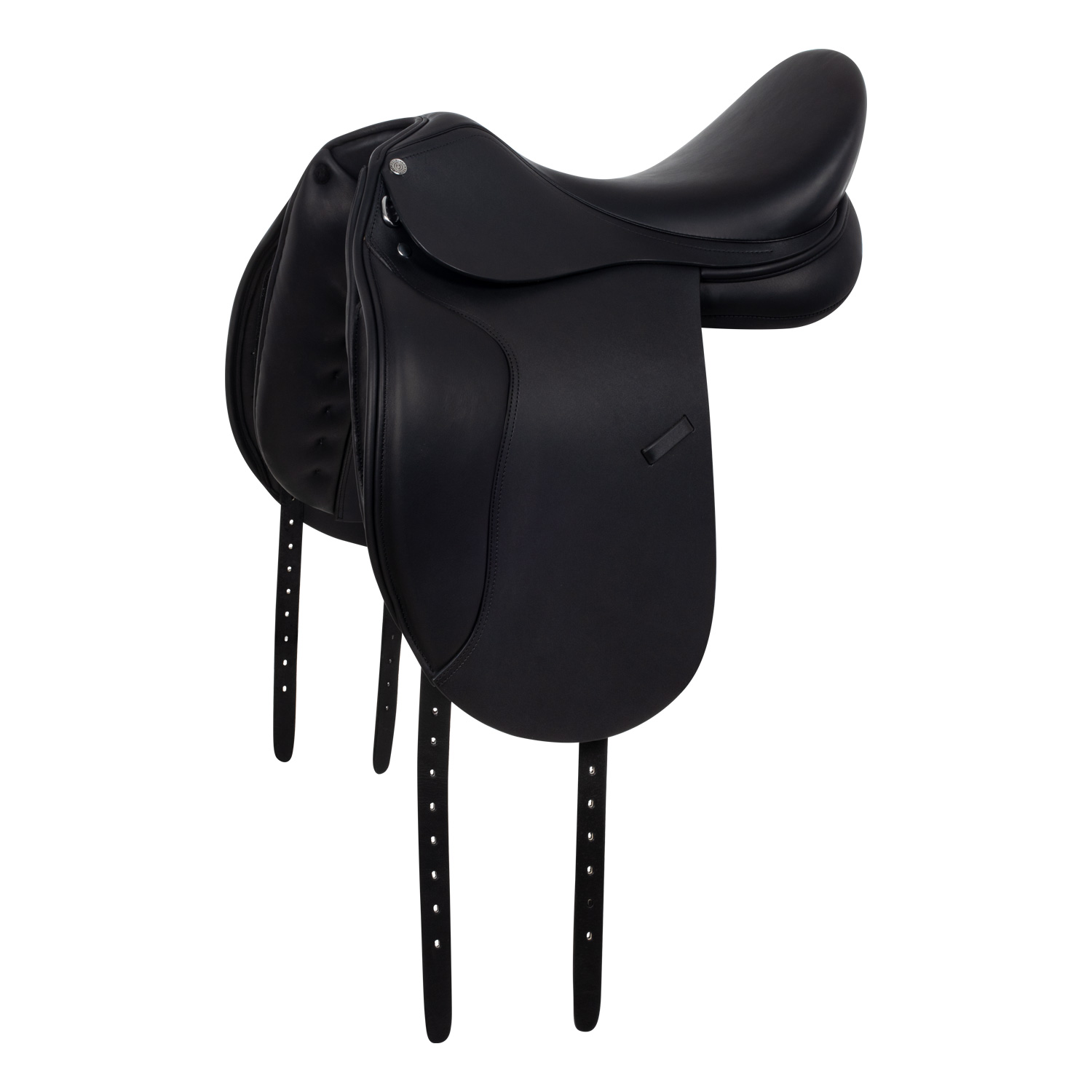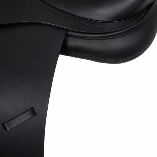 Sella da dressage realizzata in cuoio di alta qualità con blocchi removibili che consentono al cavaliere di scegliere la posizione migliore.