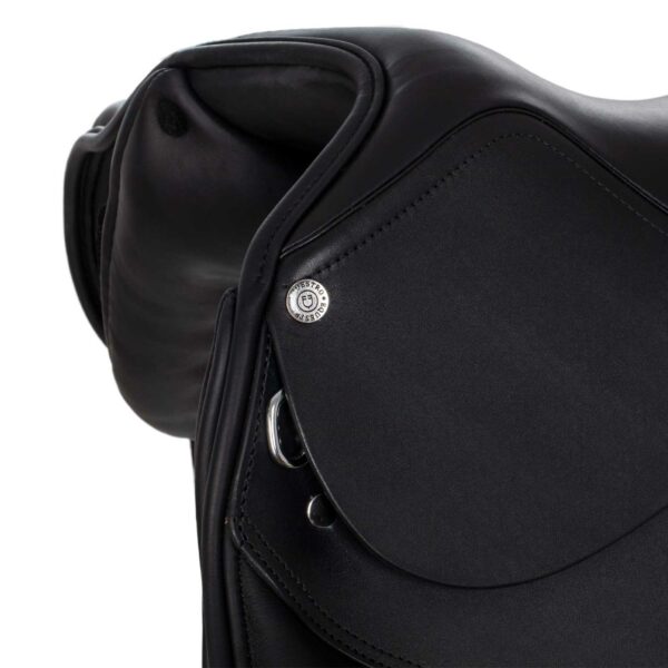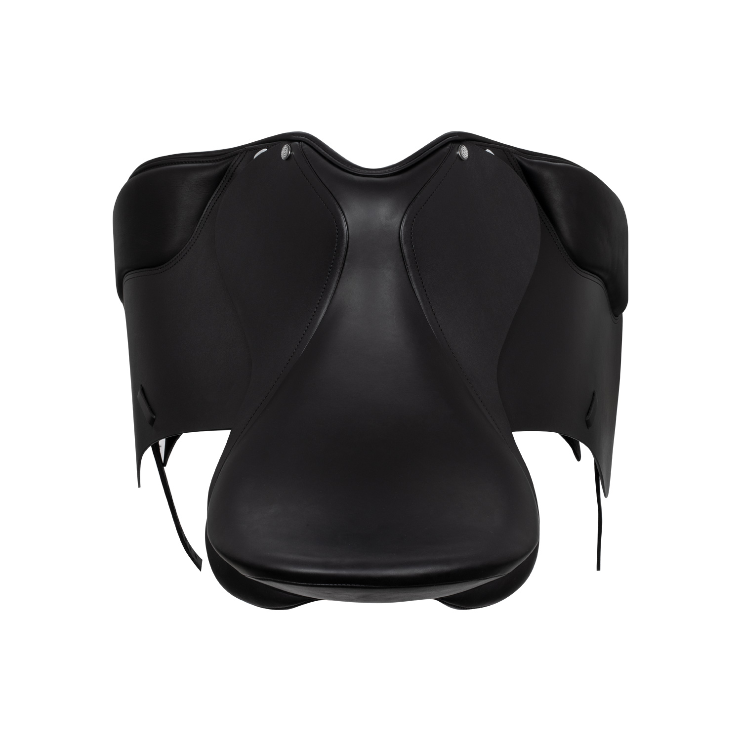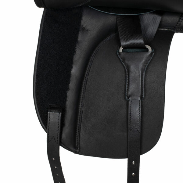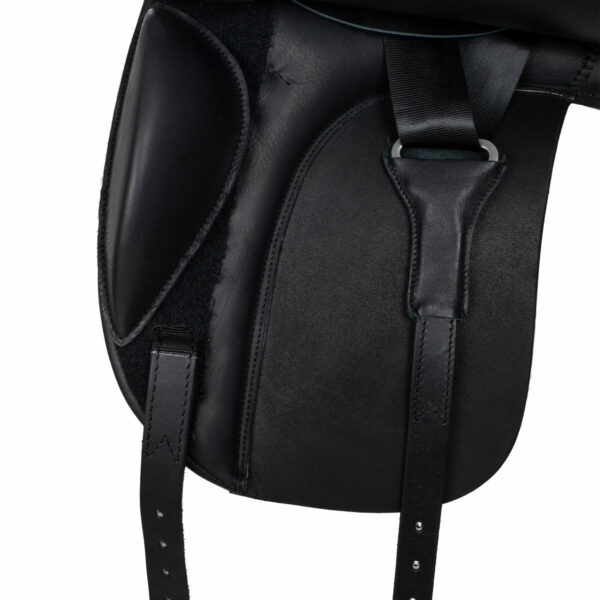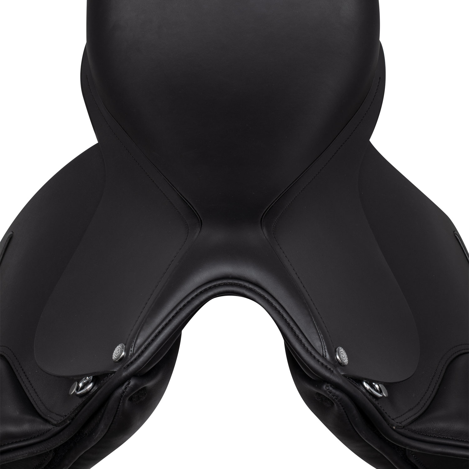 Sella da dressage realizzata in cuoio di alta qualità con blocchi removibili che consentono al cavaliere di scegliere la posizione migliore.