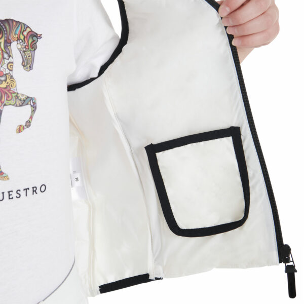 Il capo è arricchito da una chiusura a zip, scritta Equestro sulla parte sinistra del petto e due tasche laterali.