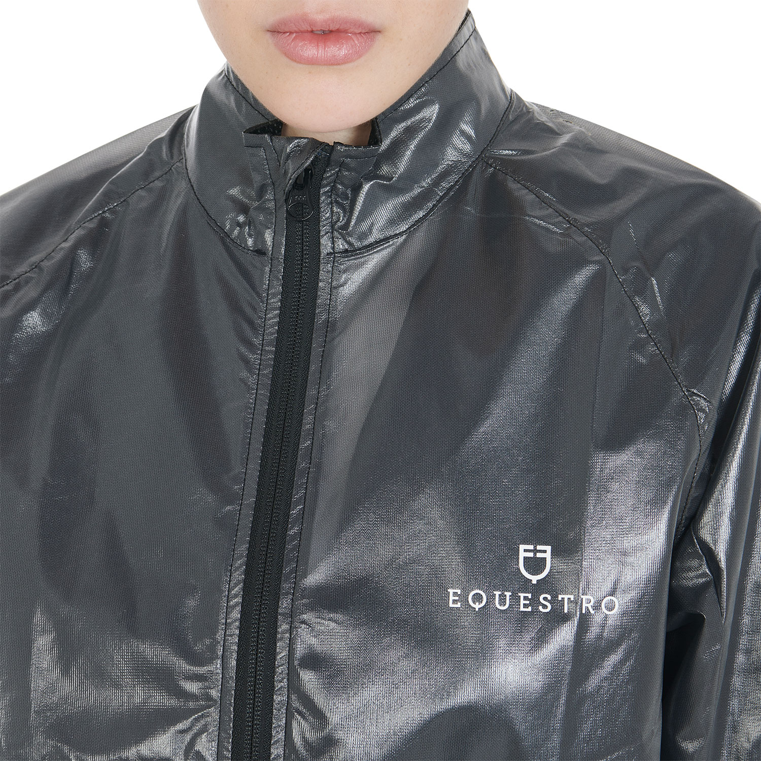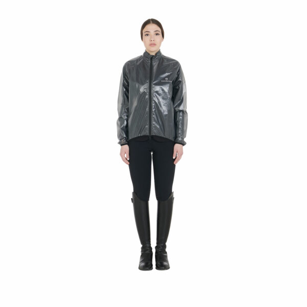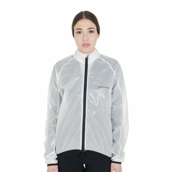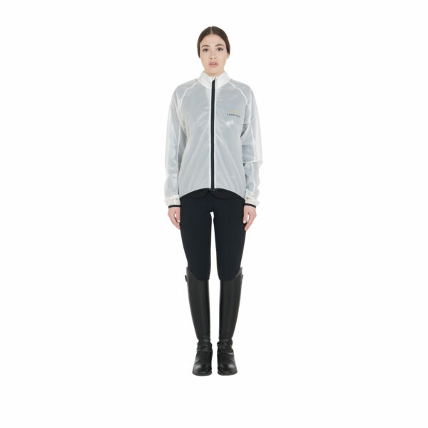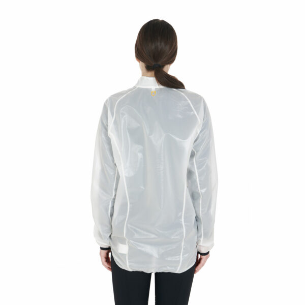 Sopragiacca unisex trasparente realizzata con particolare tessuto antivento e idrorepellente.