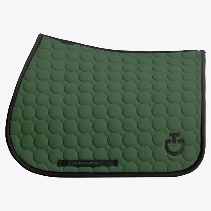 Realizzato con materiali di alta qualità, il sottosella presenta una trapuntatura a rombo che garantisce un’eccellente distribuzione della pressione e una vestibilità perfetta. La struttura 3D in cotone a nido d’ape aderisce alla schiena del cavallo, pur mantenendo un’elevata traspirabilità. Rifinito con bordo e un logo Cavalleria Toscana ricamato in rilievo, aggiunge un tocco di eleganza e stile. Il tessuto traspirante assicura una corretta ventilazione, mantenendo il cavallo asciutto e confortevole. Facile da mantenere, il sottosella è lavabile in lavatrice e asciuga rapidamente. Ideale per l’uso quotidiano e per le competizioni, il sottosella da salto Cavalleria Toscana combina funzionalità e stile, rendendolo un accessorio indispensabile per chi desidera il meglio per il proprio cavallo.