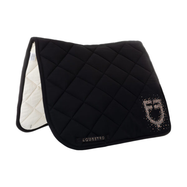 Ma ciò che rende davvero speciale questo sottosella è il logo Equestro decorato con strass. Il logo, posizionato sul lato sinistro, aggiunge un tocco di eleganza e glamour all’equipaggiamento. Gli strass scintillanti catturano la luce in modo magico, attirando l’attenzione di tutti.
