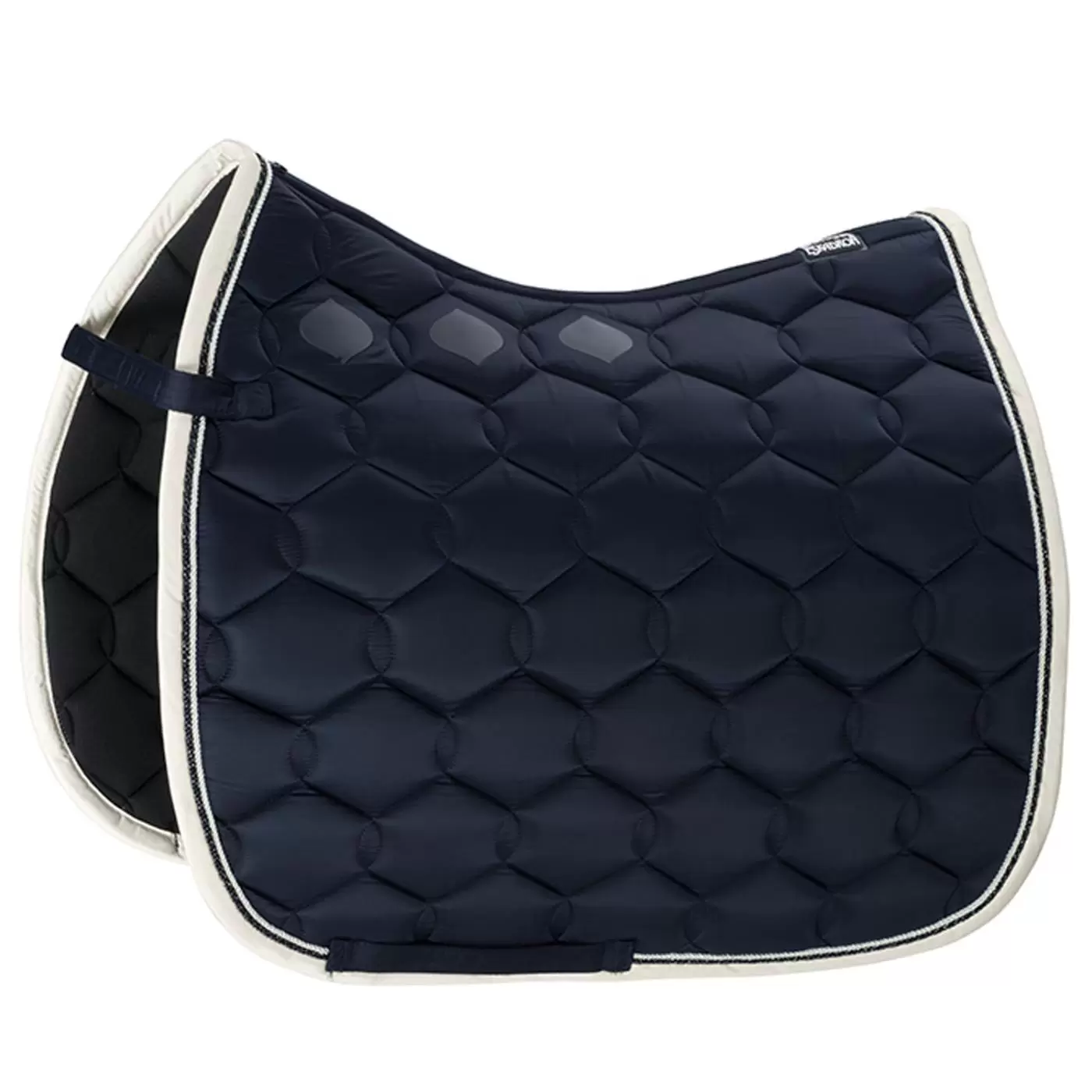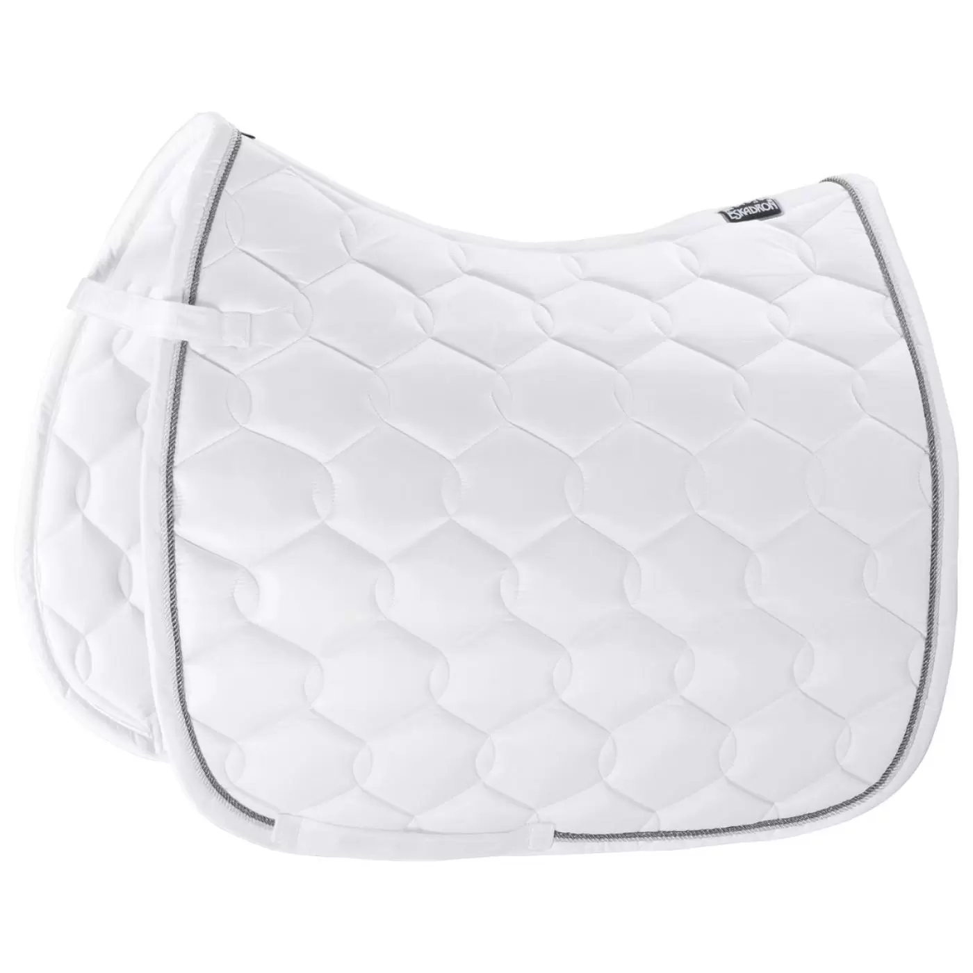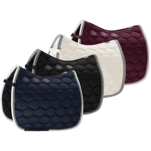 Dotato di bordino a contrasto. La parte a contatto con il pelo del cavallo è in tessuto a nido d’ape in modo da assorbire al meglio il sudore e rendere il tutto più traspirante.