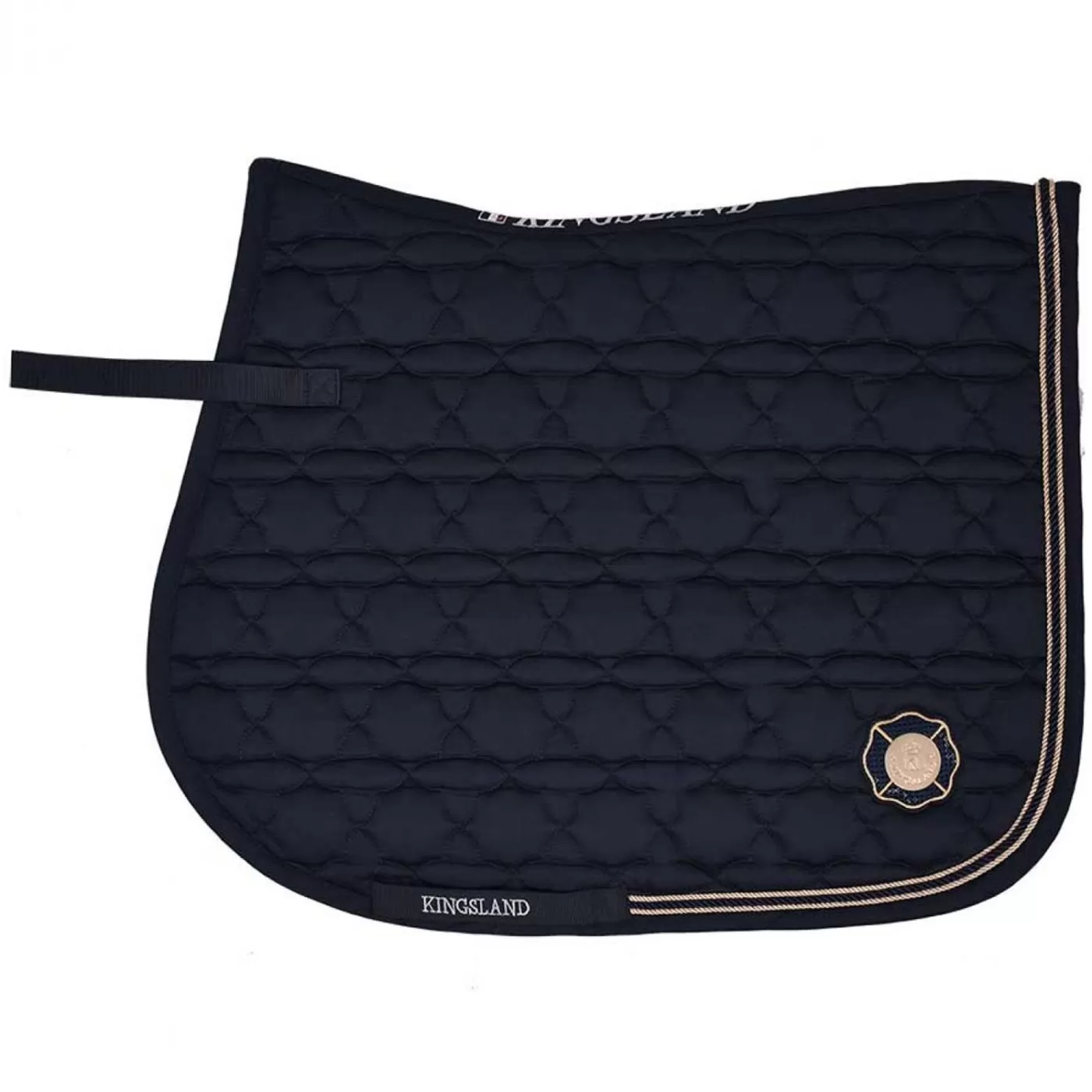 Sottosella da salto per montare a cavallo Kingsland modello “Kenai”. Modello con trapuntatura geometrica, tripolo cordino sul bordo.