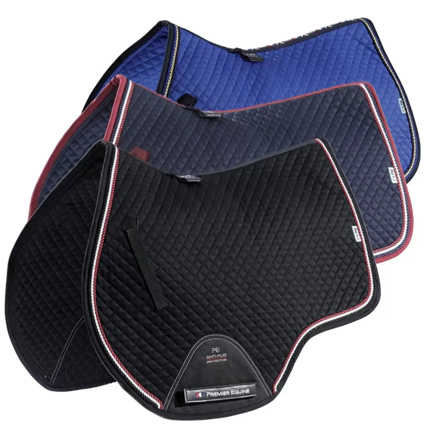Il sottosella da salto in cotone europeo GP / Jump Square della Premier Equine, è di alta qualità e colorato, ideale per l’uso quotidiano e per le gare.