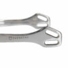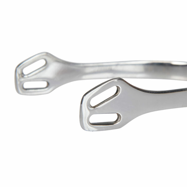 Il loro design, caratterizzato da un doppio occhiello di cui uno svasato, permette allo sperone di modellarsi perfettamente allo stivale e soprattutto permette al lacciolino di regolarsi e rimanere saldo durante l’utilizzo.