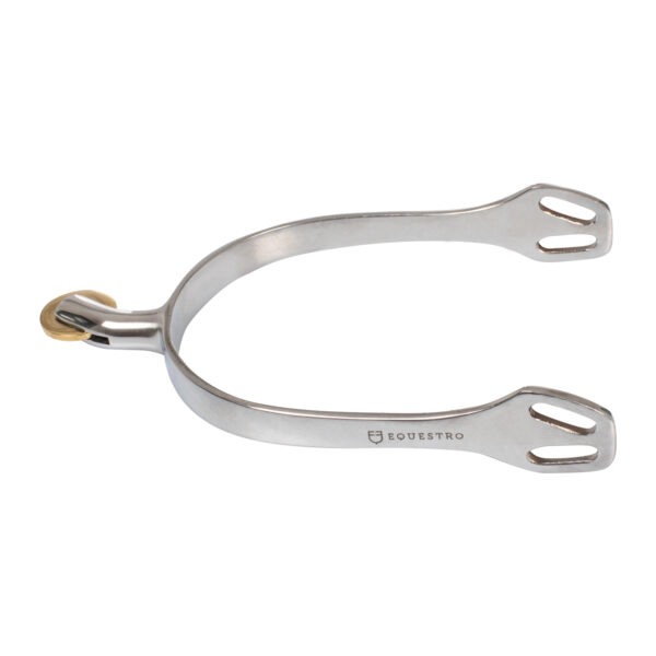 Speroni inglesi con rotella in ottone dal design innovativo caratterizzato da doppio occhiello, di cui uno svasato, per consentire allo sperone un’ottima stabilità.