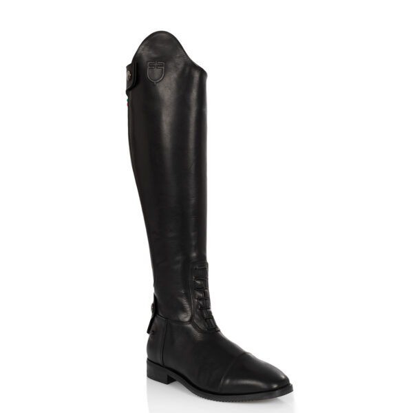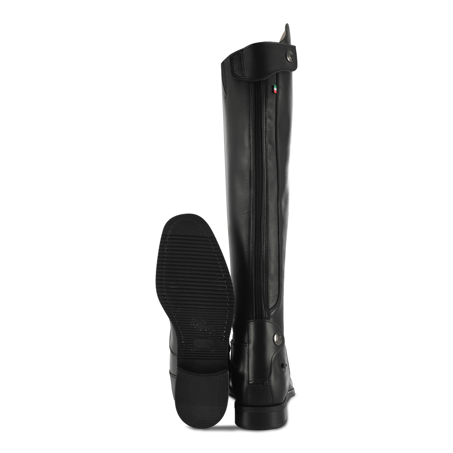 La suola tecnica Vibram permette la massima adererenza alla staffa e il sostegno per lo sperone evita lo scivolamento di quest’ultimo.