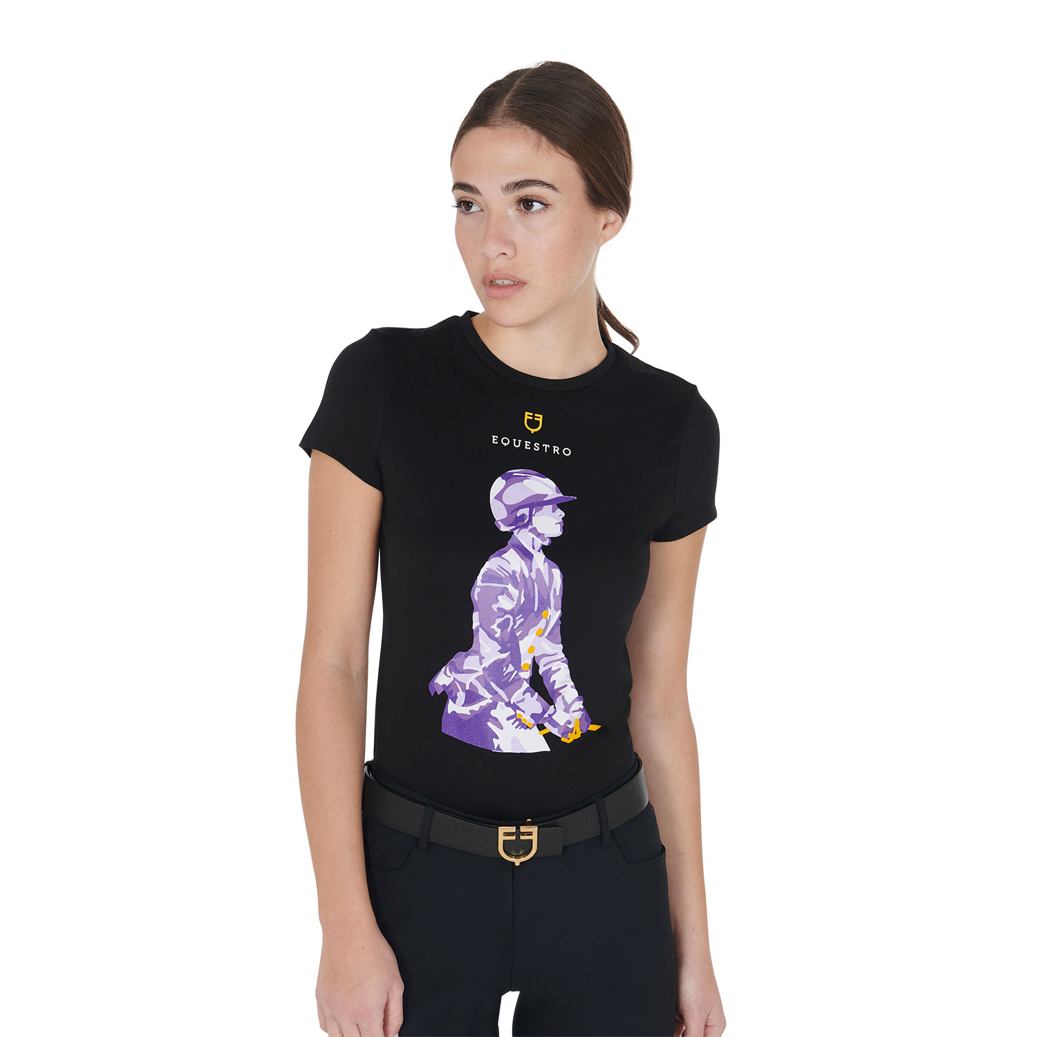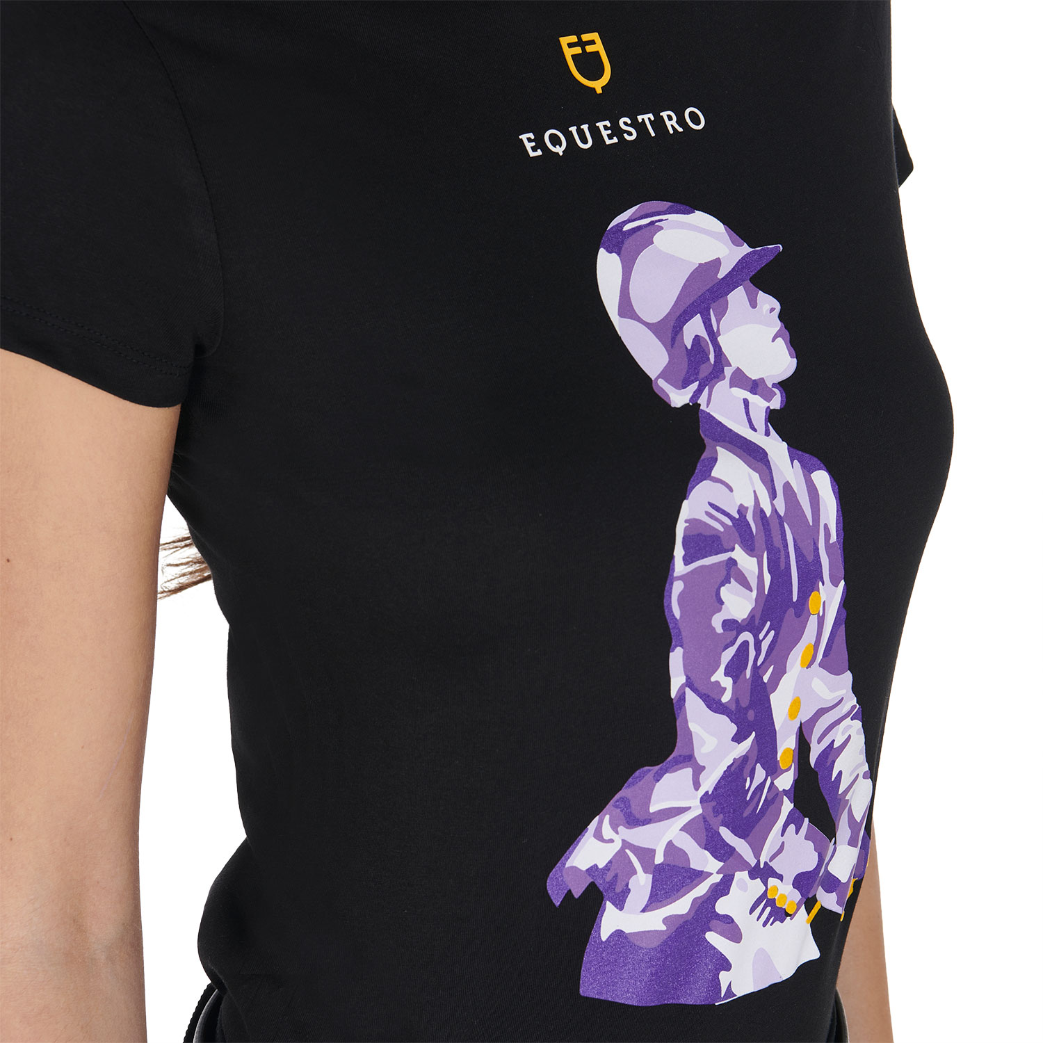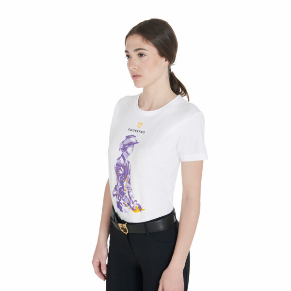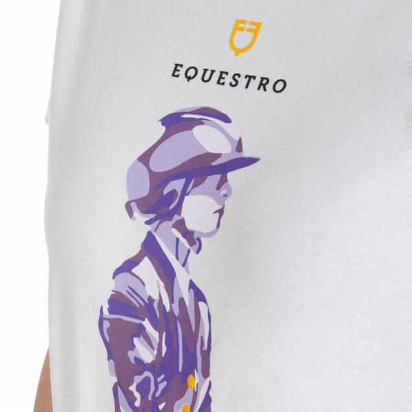 Presenta un’eleganza minimale, impreziosita dalla stampa colorata e logo Equestro con scritta stampato sul petto.