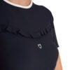 Il prodotto presenta un girocollo ed è impreziosito con una delicata ruches sul petto che dona movimento e dinamicità al capo.