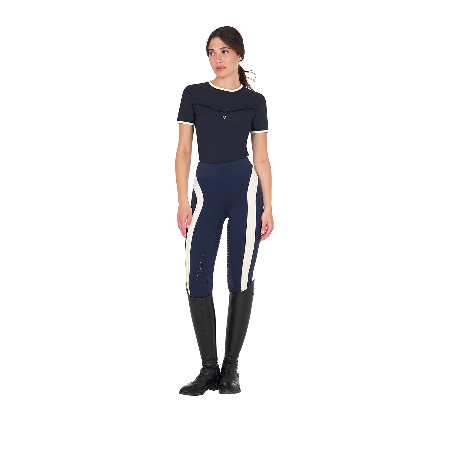 Il punto di forza del capo è la raffinatezza donata dai dettagli che sono curati minuziosamente come la ruches e i bordini a contrasto elasticizzati. Questi aggiungono un tocco di eleganza e glamour all’outfit sportivo e la rendono la scelta perfetta per chi cerca un articolo che unisca perfettamente moda e performance in allenamento.