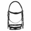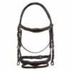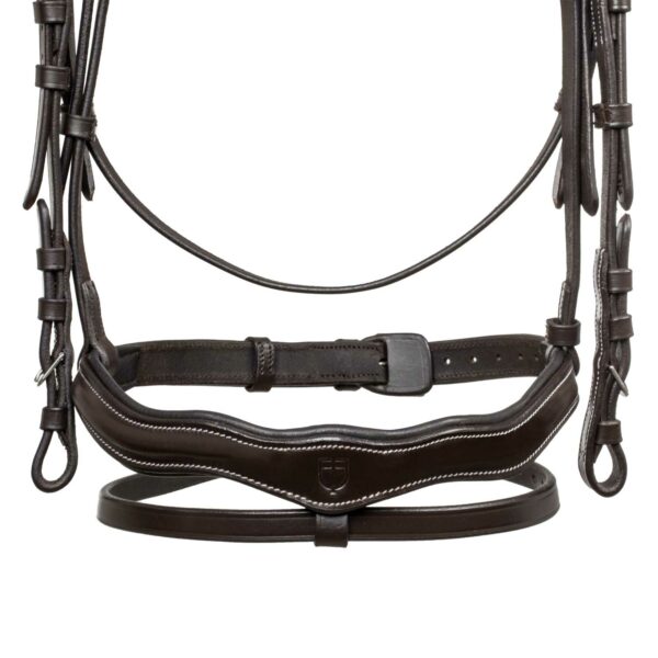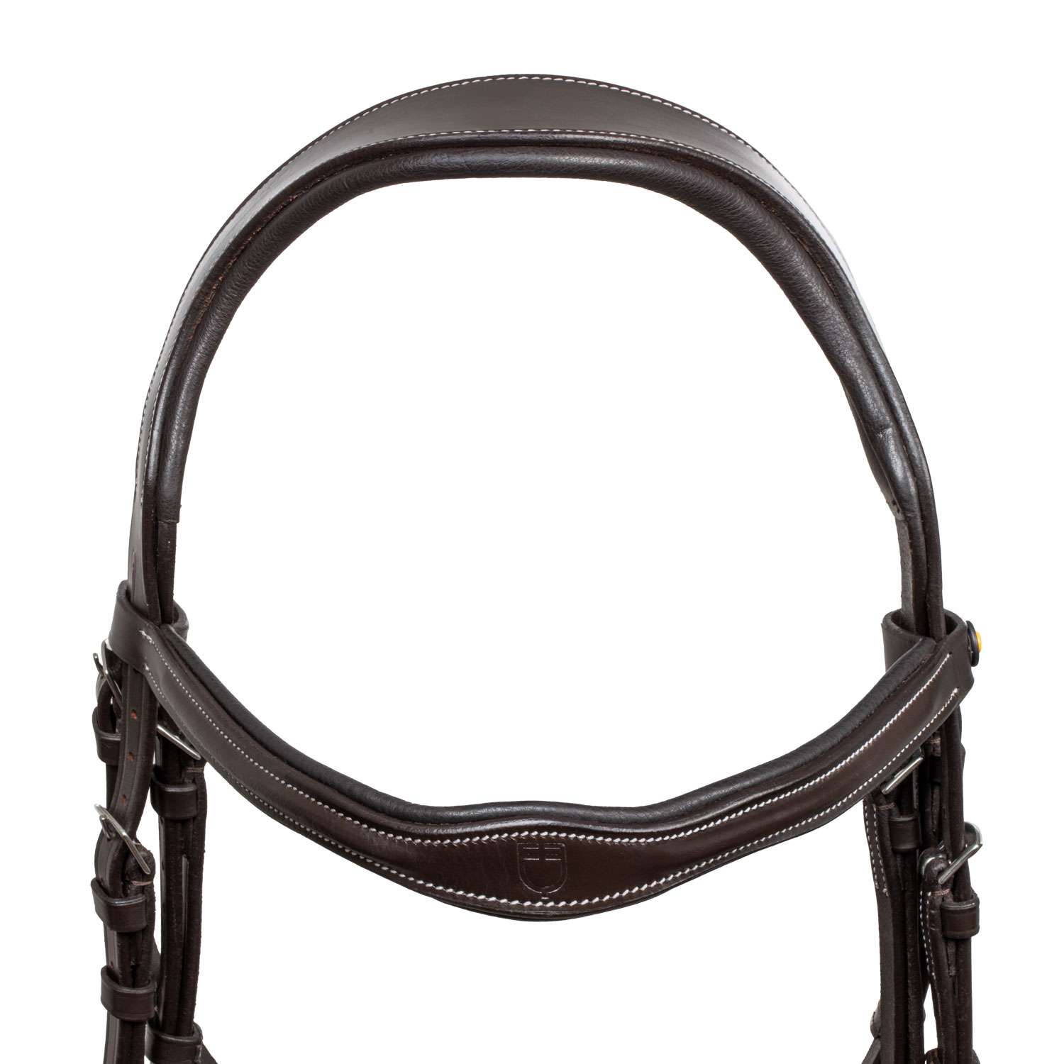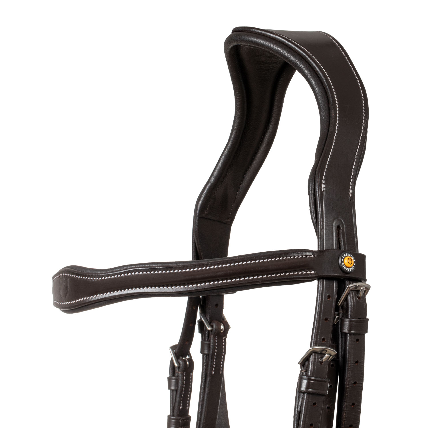 Testiera inglese in morbido cuoio di alta qualità, con fibbie in acciaio inox per garantire sicurezza, stabilità e resistenza nel tempo.